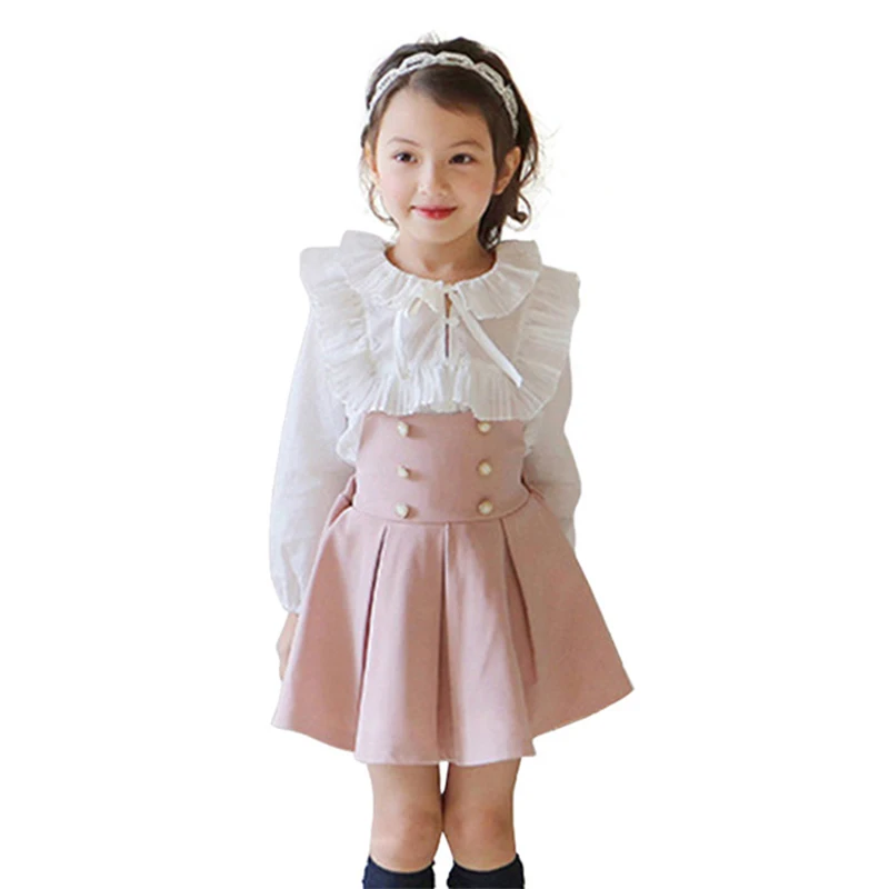 Special Offer 2017 conjuntos de ropa para niños niñas vestido + Camiseta de encaje 2 piezas conjunto princesa bebé niña otoño nueva ropa coreana para los niños de la escuela Discount 30% Today!