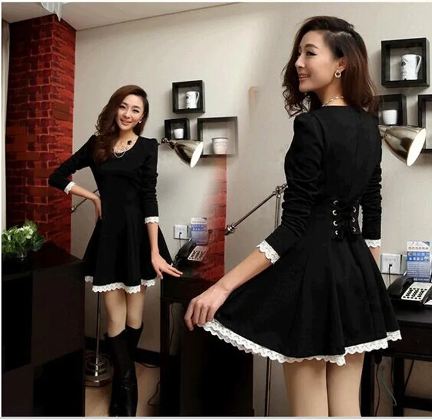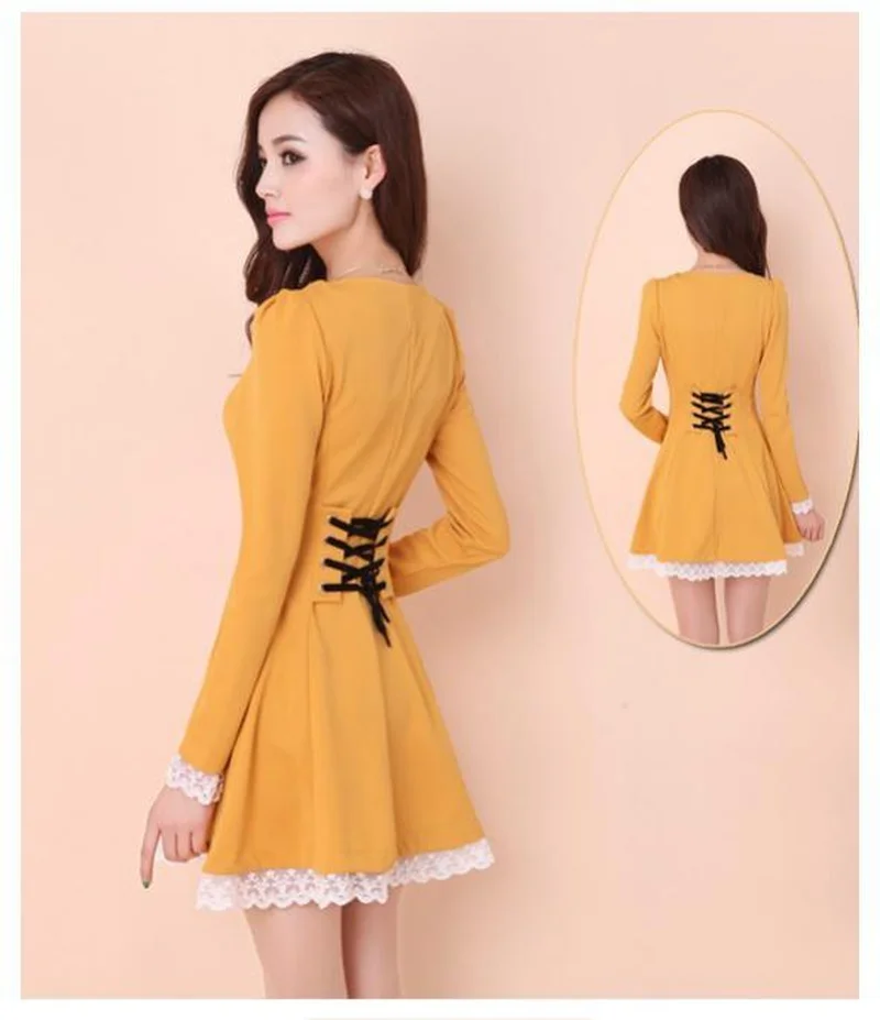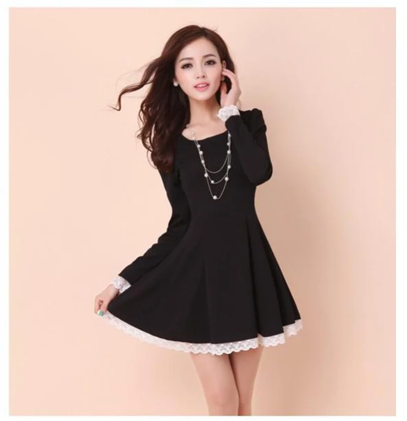 Special Offer Vestidos de verano Mujer encaje costura manga larga tejido delgado vestido 2019 nuevo Casual A line Bottoming vestido moda femenina Discount 30% Today!