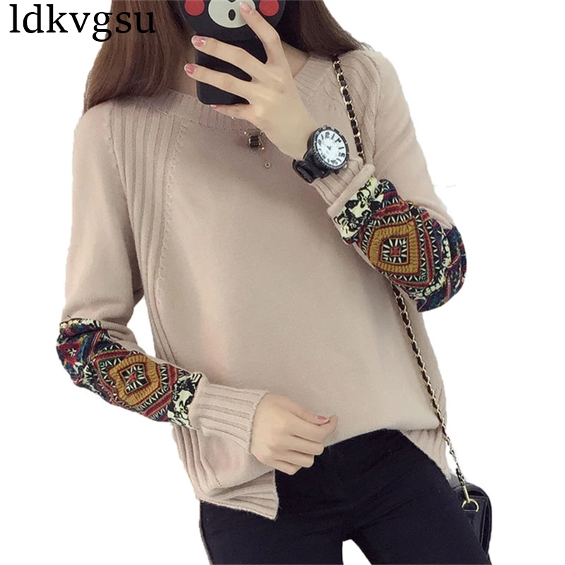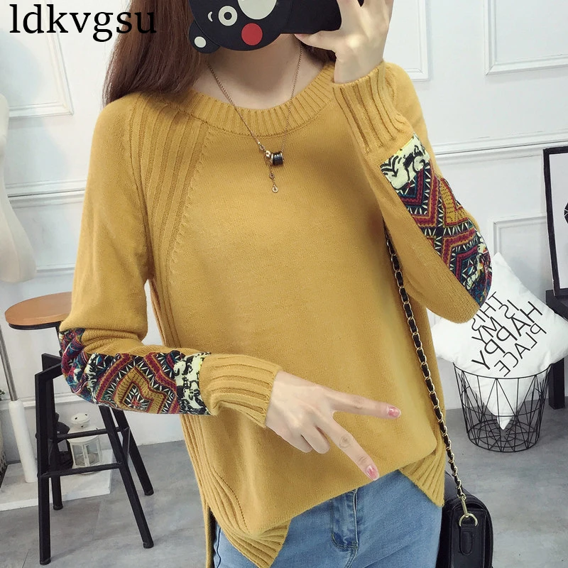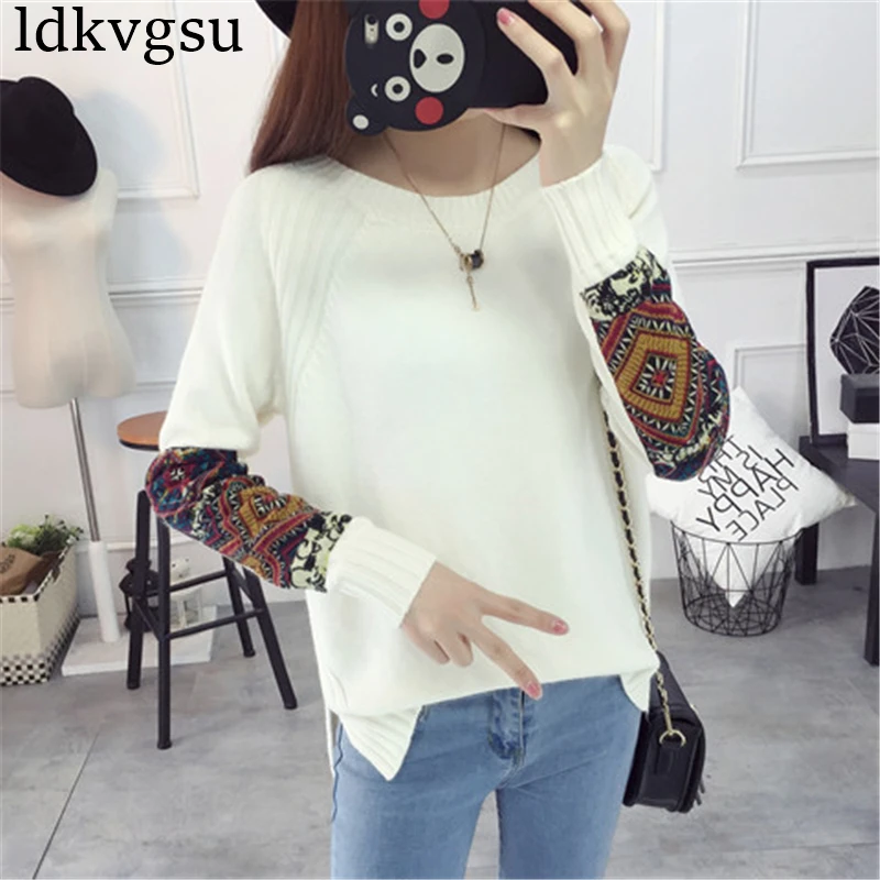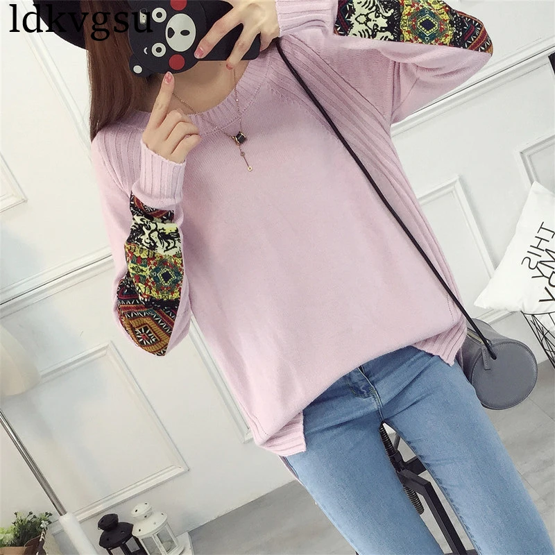 Special Offer 2019 Otoño Invierno jerseys de punto de alta calidad cuello redondo estampado camisetas de talla grande Jerséis de mujer camisa de fondo chicas A457 Discount 40% Today!