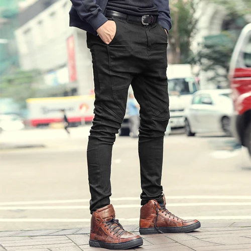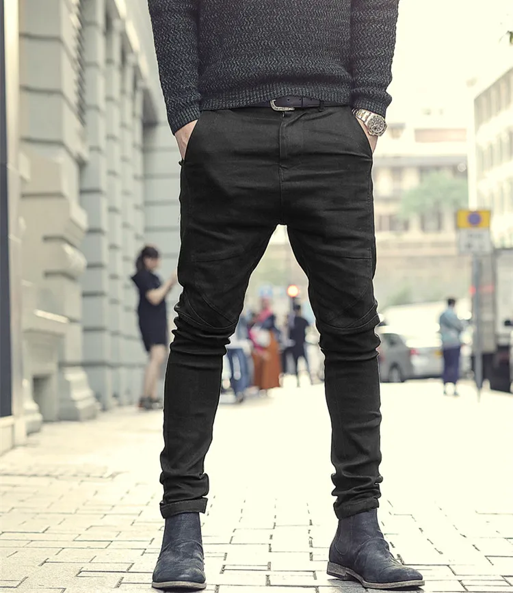 Special Offer Pantalones vaqueros de Primavera de bambú ajustados negros de estilo europeo elásticos nuevos de algodón con cremallera bragueta del pantalón para hombre K951 Discount 40% Today!