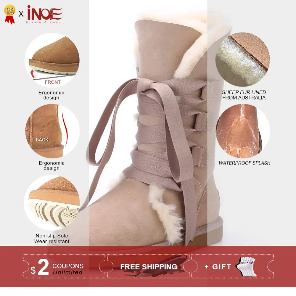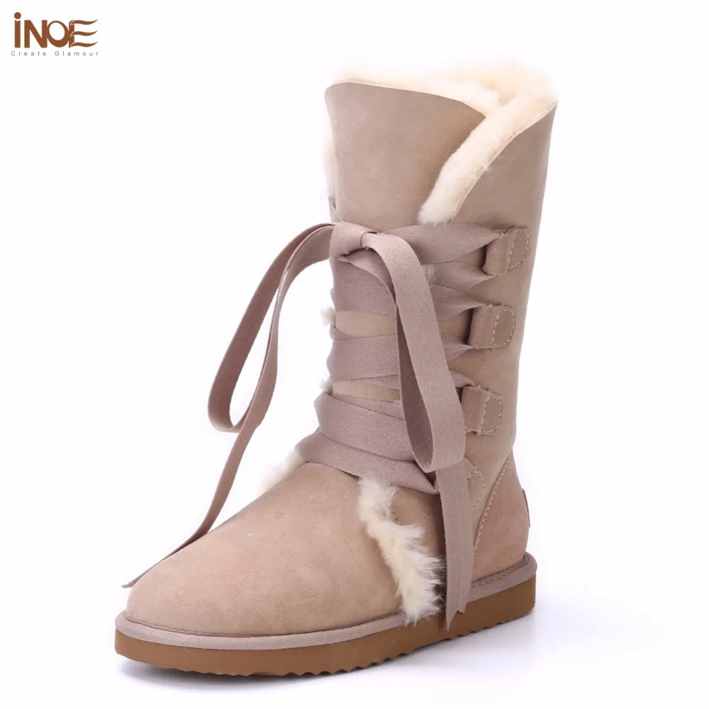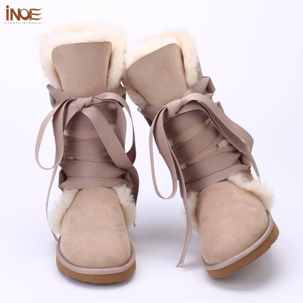 Special Offer Botas altas de invierno con cordones para mujer, de piel de oveja, forrado de piel y lana, para nieve, con lazo, para mujer, color púrpura Discount 47% Today!