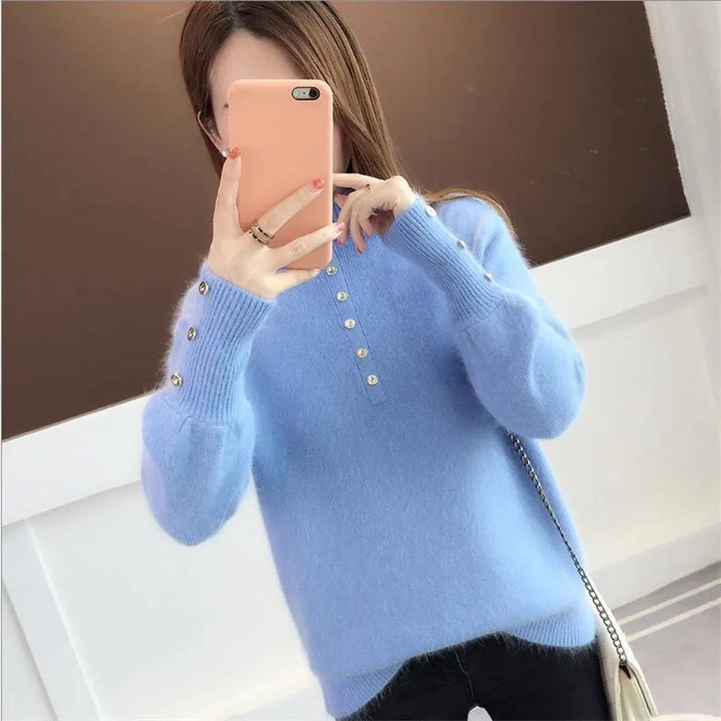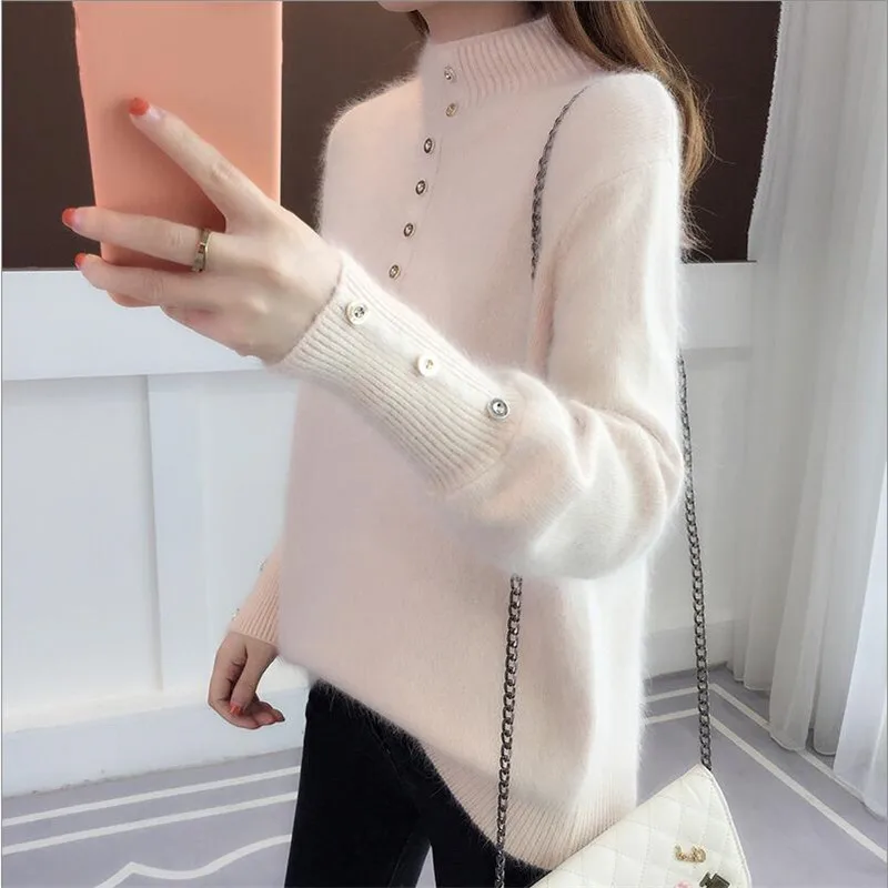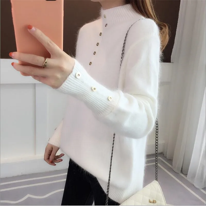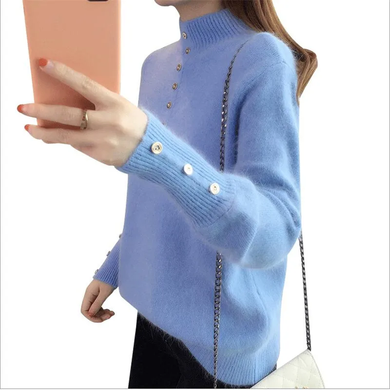 Special Offer Suéter de cuello alto cabeza de mujer 2019 nuevo Otoño e Invierno suelto de color sólido de punto camisa de oficina de señora Discount 50% Today!