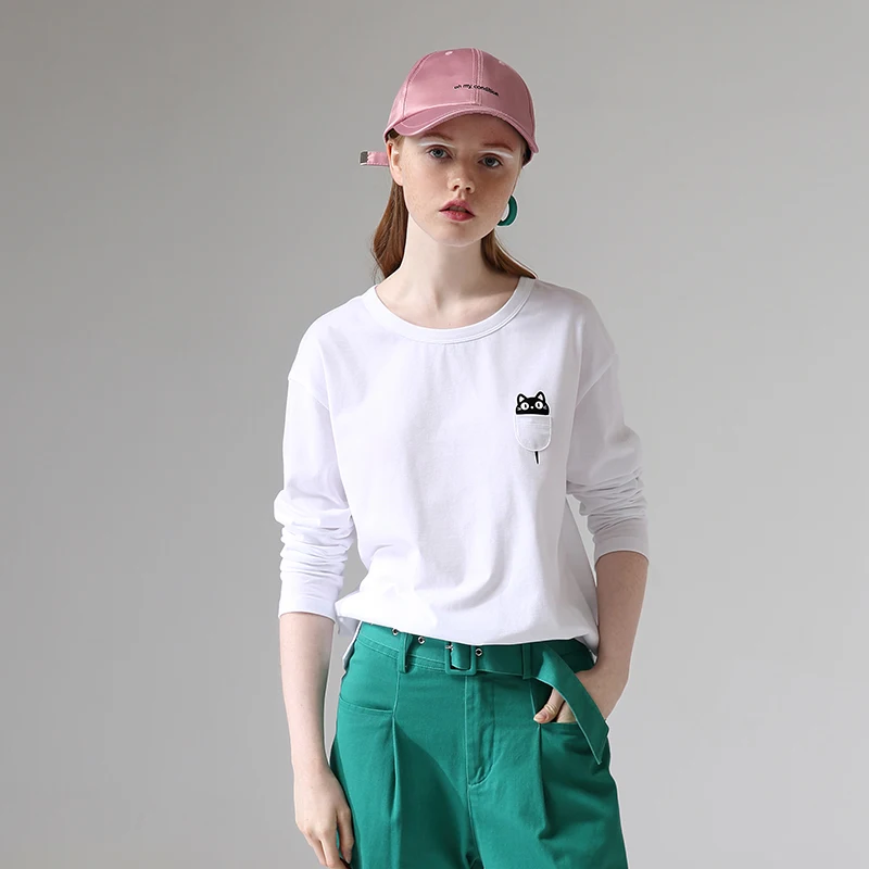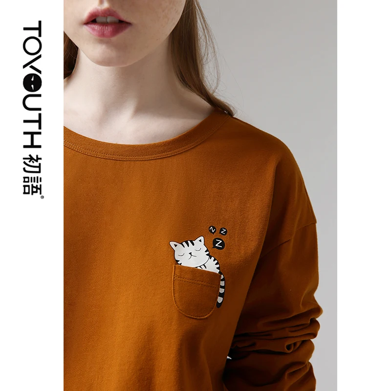Special Offer Camisetas Toyouth de algodón de otoño divertidas camisetas de animales bordadas para mujeres Casual cuello redondo de manga larga Discount 55% Today!