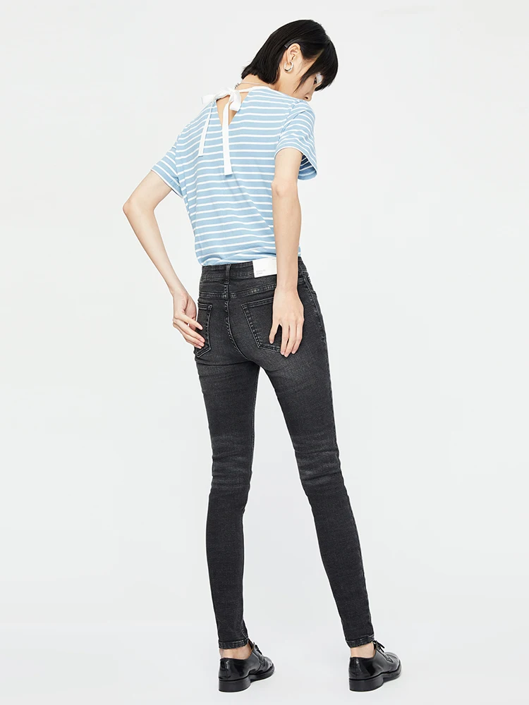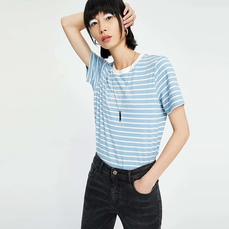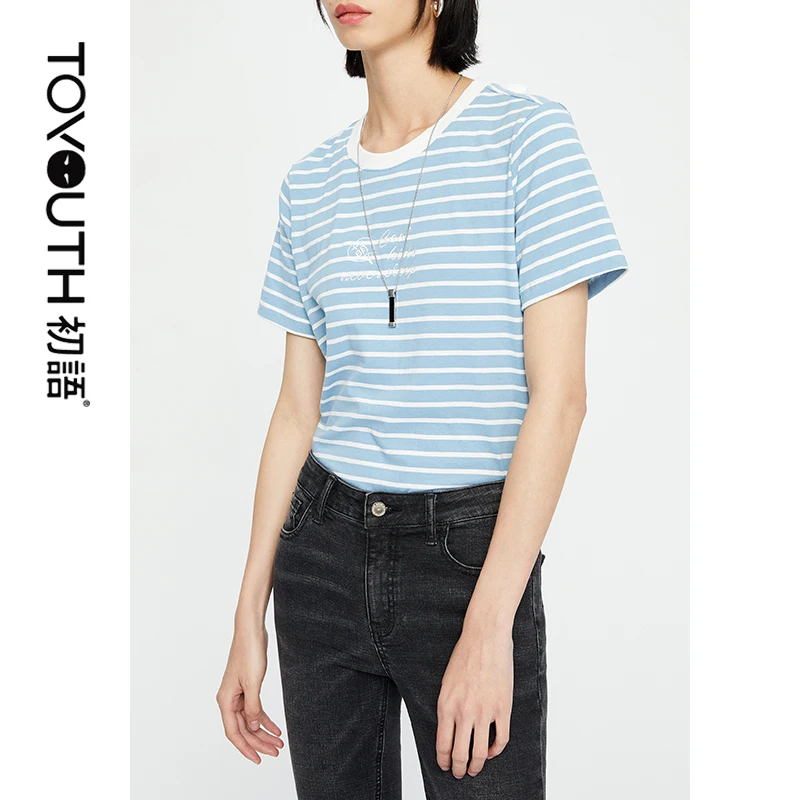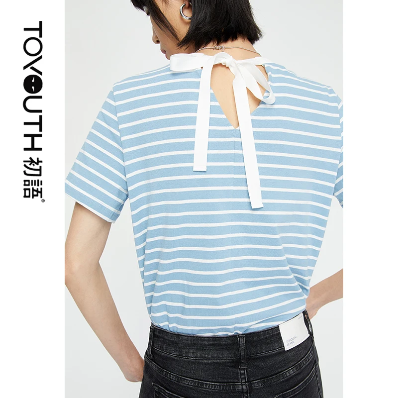 Special Offer Toyouth mujeres verano rayas camiseta femenina Casual cuello redondo espalda lazo manga corta Casual camiseta algodón Tops Discount 57% Today!