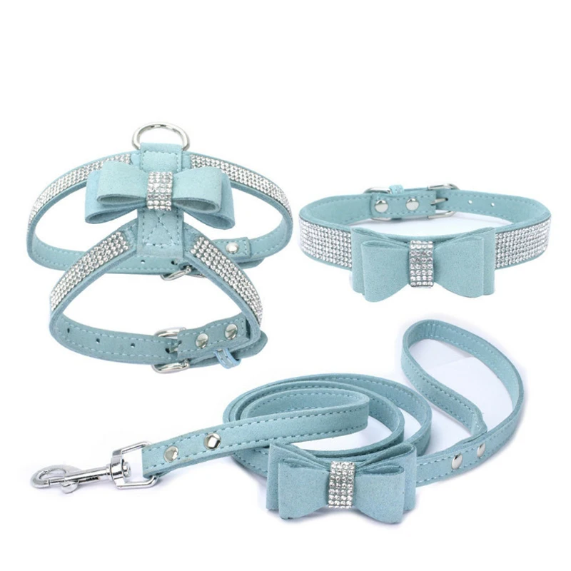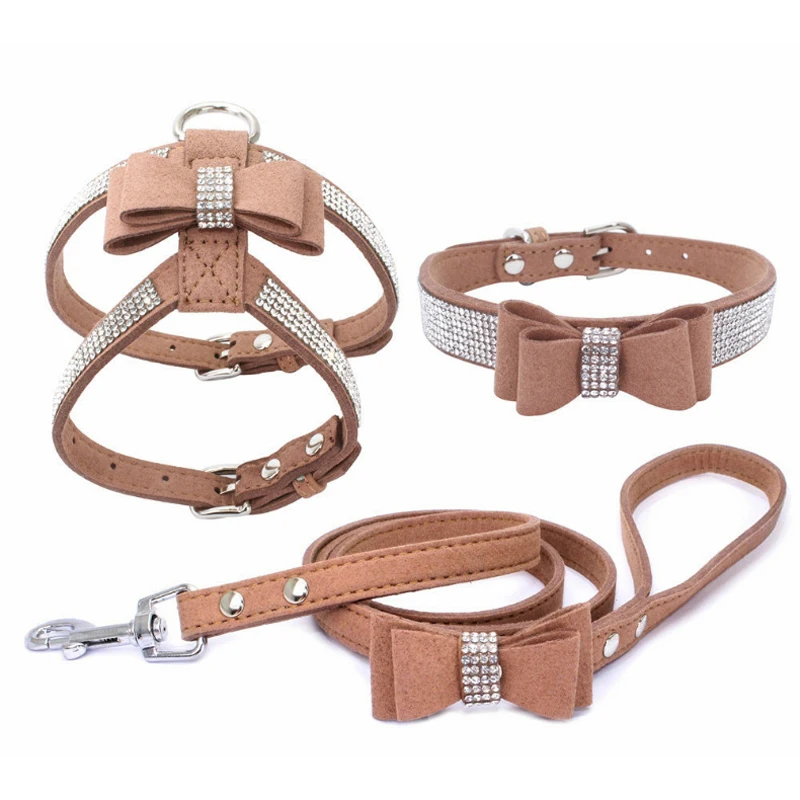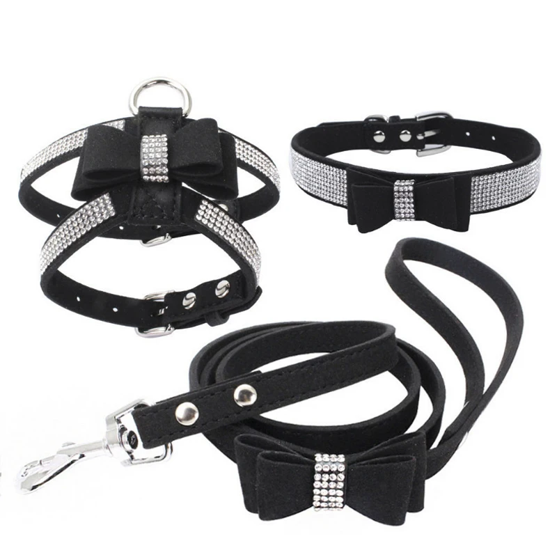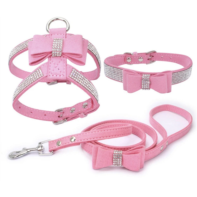 Special Offer Correa de pecho ajustable con hebilla de diamantes de imitación suave gamuza arco Pet arnés para perro o gato cuero de alta calidad para mascotas Collar conjunto de 3 piezas Discount 6% Today!