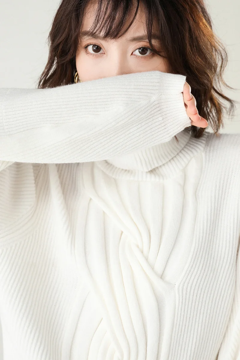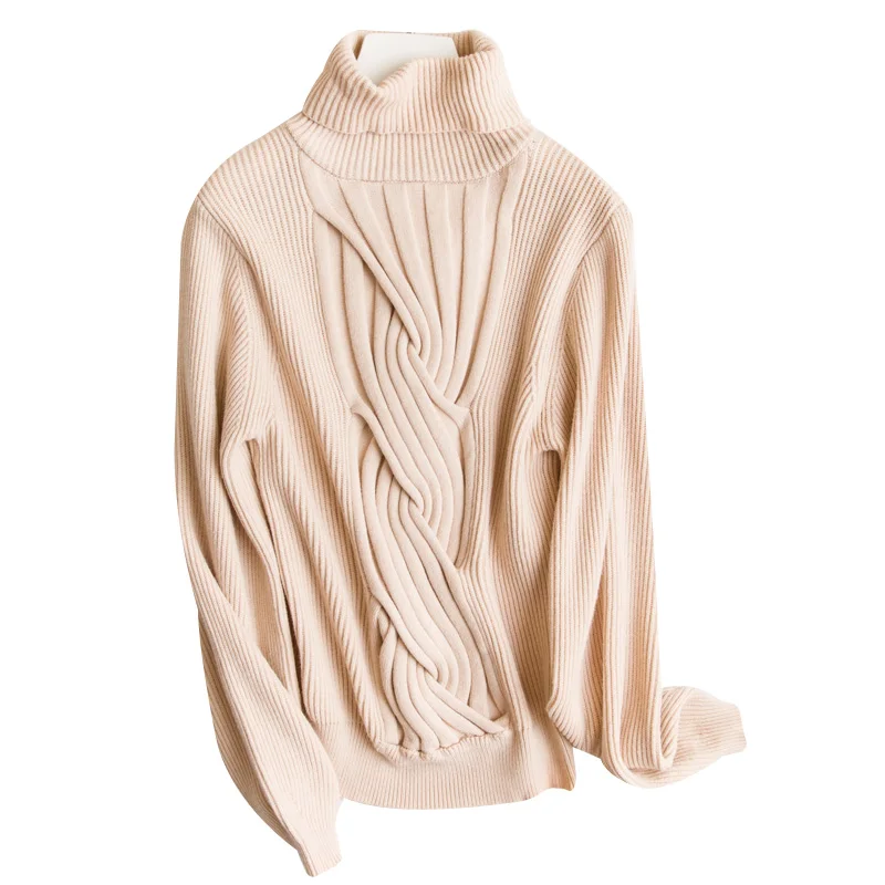 Special Offer 2019 nuevo jersey de invierno de cuello alto de manga larga de rayas de mujer suéter de color sólido salvaje de sección corta de Cachemira gruesa para mujer suéter Discount 70% Today!