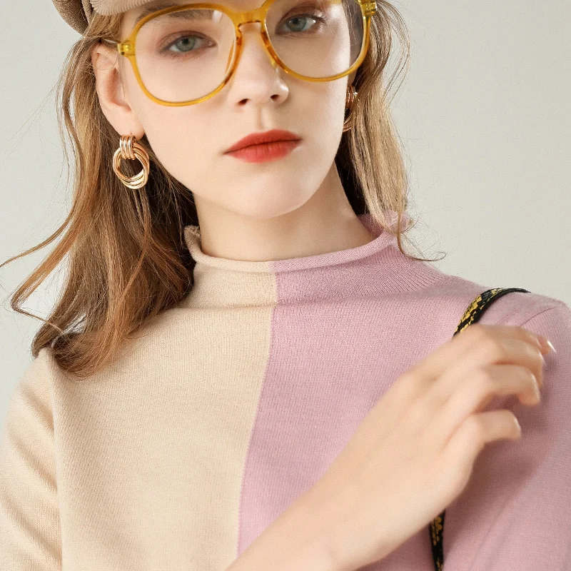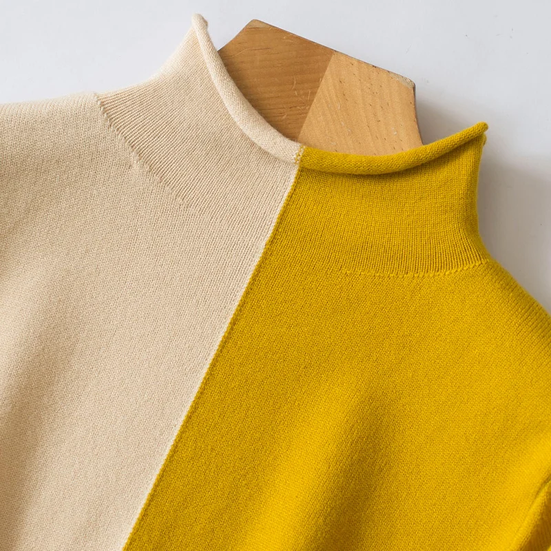 Special Offer Suéter de Invierno para mujer 2019 nuevo suéter de dos colores con costura de cuello alto para mujer salvaje suéter de punto de Cachemira Discount 71% Today!