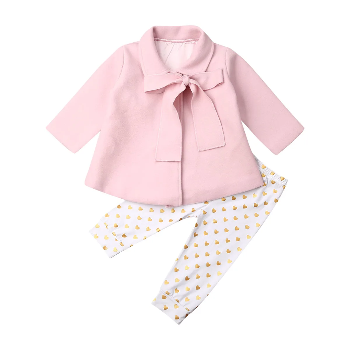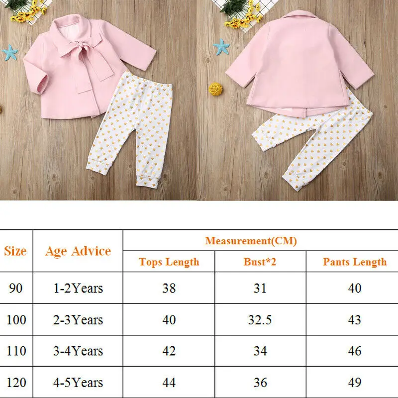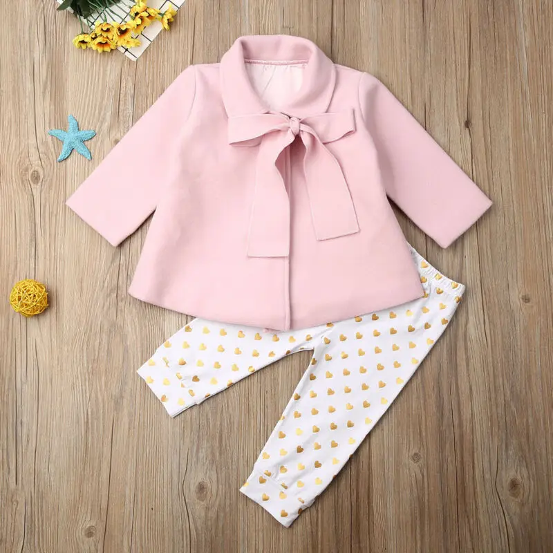 Special Offer 1 5Y niños pequeños bebé niña Otoño Invierno arco lana abrigo chaqueta tapas corazón estampado pantalón largo Legging 2 uds conjunto de ropa Discount 0% Today!