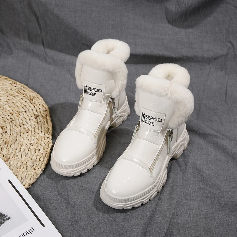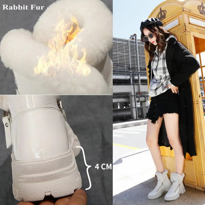 Special Offer Dropshipping nueva moda botas de piel de conejo de cuero genuino botas gruesas botas de mujer con cremallera Martin botas de tobillo corto XYZ300 Discount 0% Today!