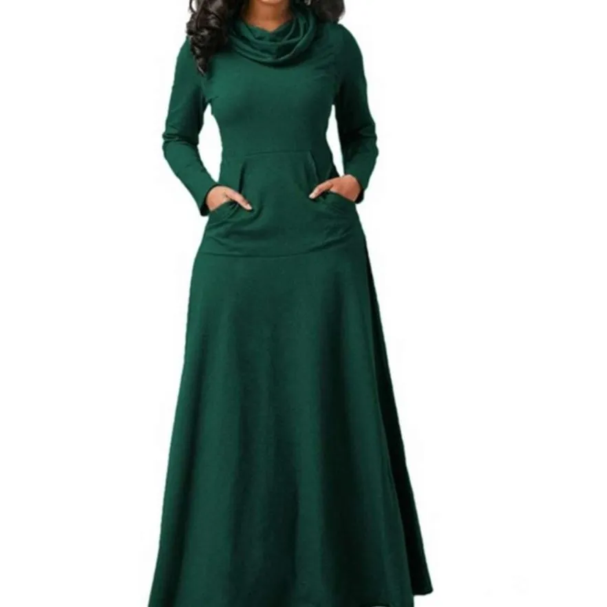 Special Offer Vestido de mujer cálido con bolsillo Casual sólido Vintage Otoño Invierno Maxi vestido bata cuello arco largo vestido elegante Discount 0% Today!