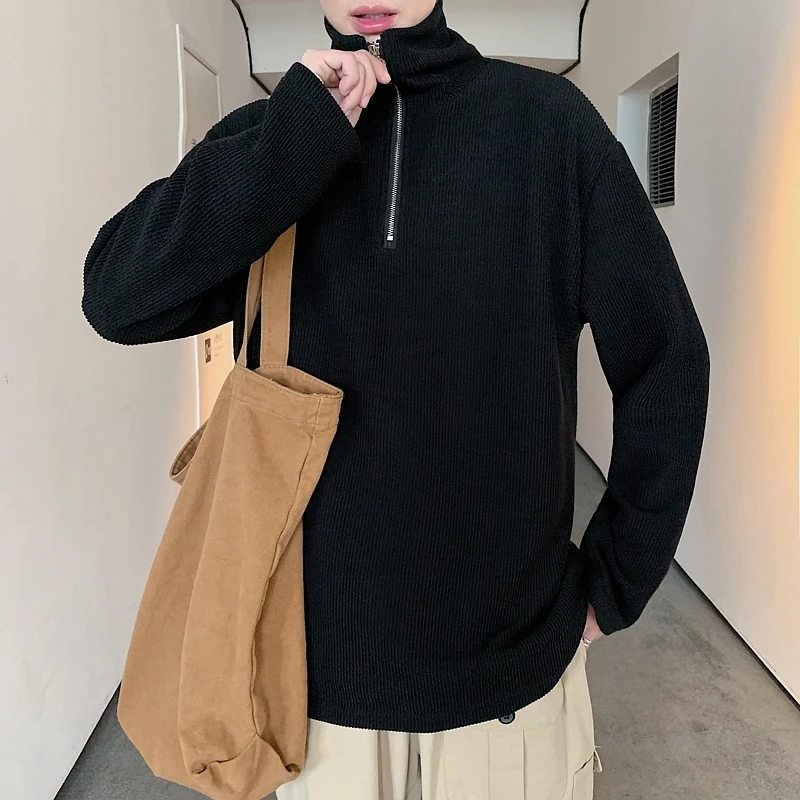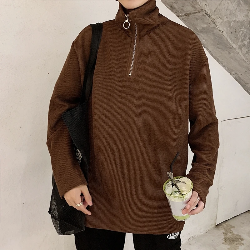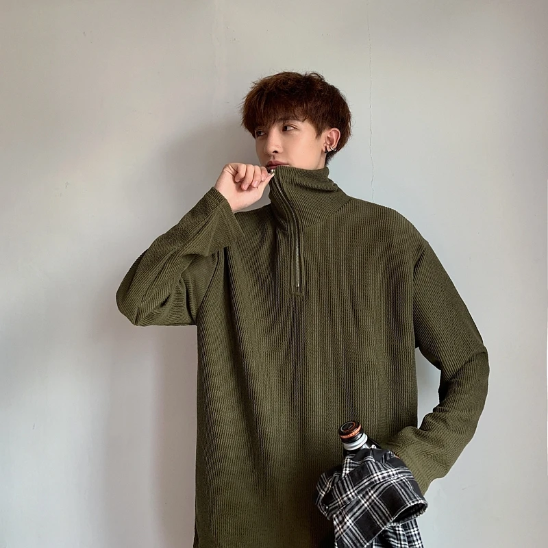 Special Offer 2019 primavera y otoño nueva camisa de fondo de cuello alto Tee Pit tela moda Casual de manga larga sudadera para hombre m 2XL Discount 10% Today!