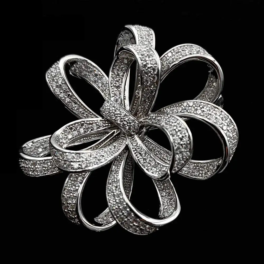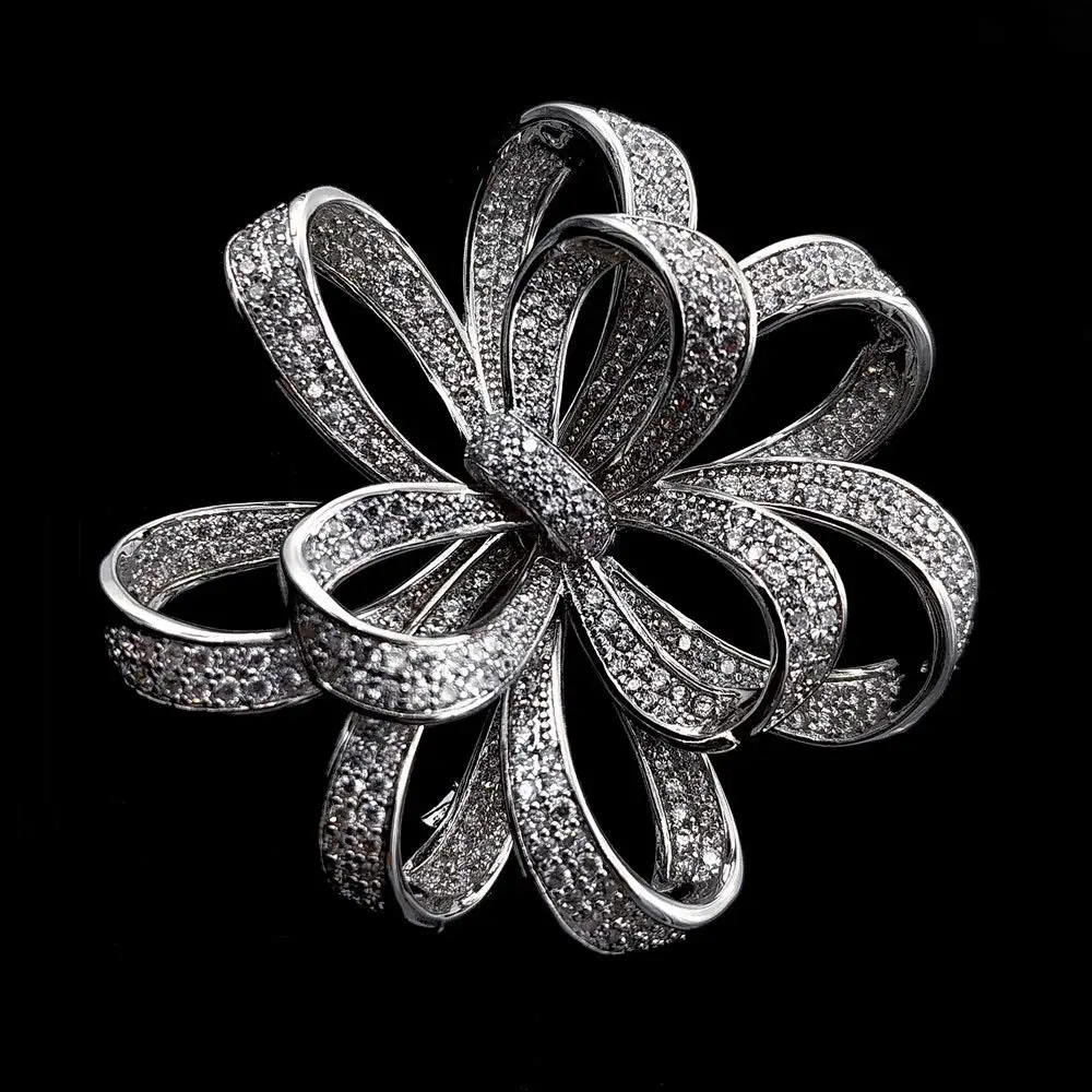 Special Offer Victorian Vintage Micro pavimenta claro cristal broches con diseño de lazo de tono de plata diadema estilo Floral cinta arco Pin broche, joyería nupcial Discount 24% Today!