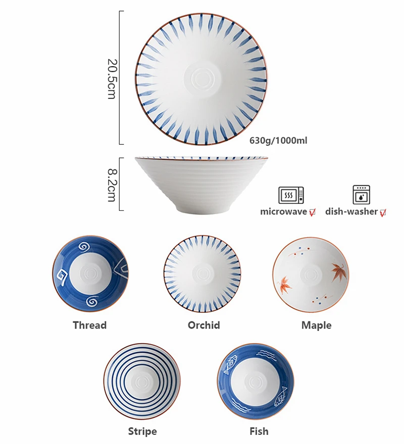 Special Offer Cuenco de fideos japonés de 8 pulgadas, cuenco de sopa de arroz y fruta, cuenco de fideos de Ramen, vajilla de cerámica para microondas Discount 30% Today!