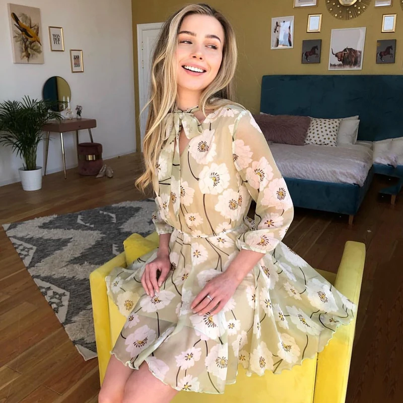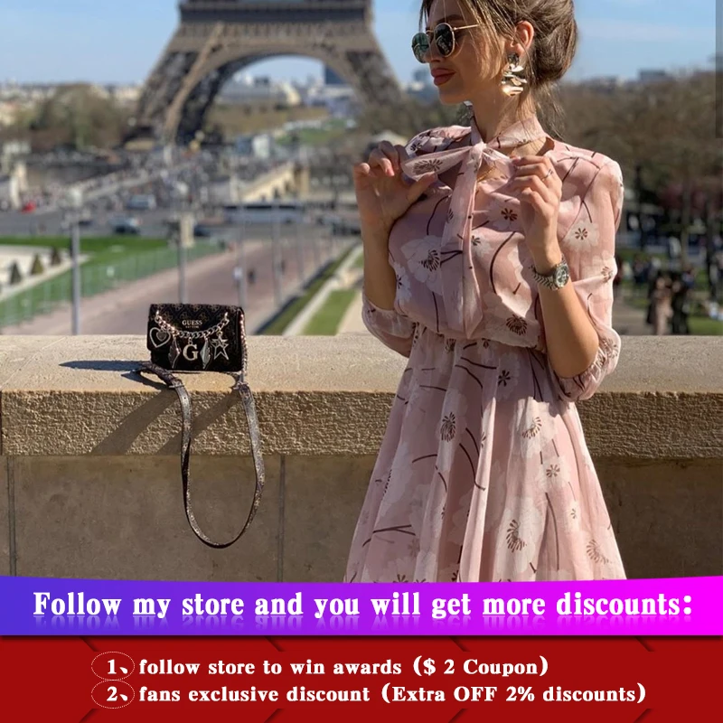 Special Offer Losky vestido elegante primavera verano Mujer Casual Floral estampado pajarita Vestido corto Mini vestidos de fiesta ropa bonita moda 2020 Discount 35% Today!