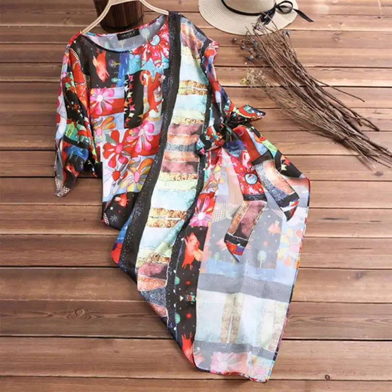 Special Offer ZANZEA mujeres Floral impreso Irregular bohemio blusa verano manga corta étnica suelta fiesta camisa superior Blusas de talla grande Discount 40% Today!