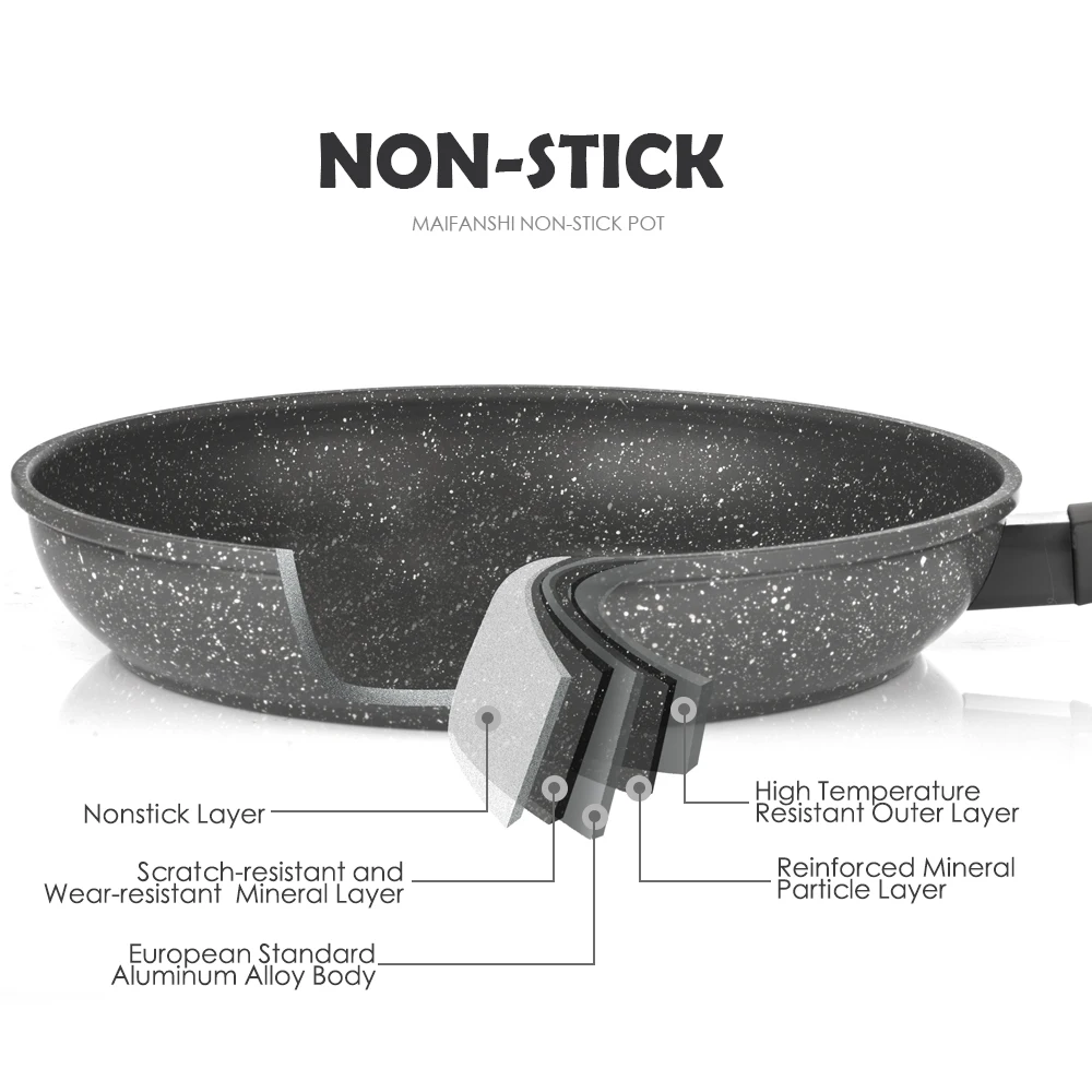 Special Offer 100% cacerola antiadherente de PFOA con revestimiento antiadherente de 5 capas mango suave de aluminio olla para freír tamaño en 8 y 10 pulgadas Discount 46% Today!