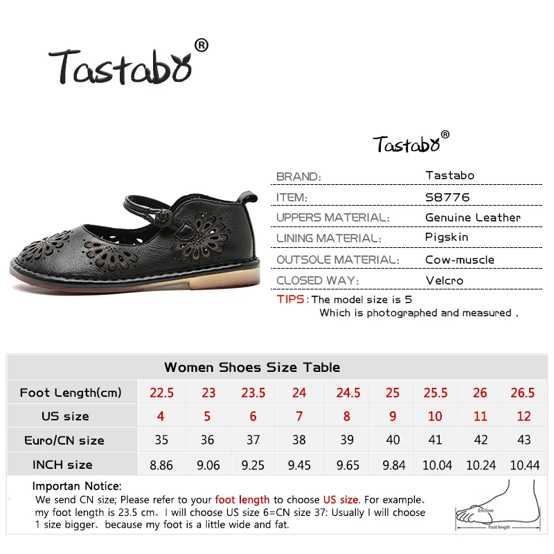 Special Offer Zapatos de mujer de cuero Tastabo zapatos planos informales zapatos de patrón calado cómodos zapatos suaves transpirables negro rojo Discount 48% Today!