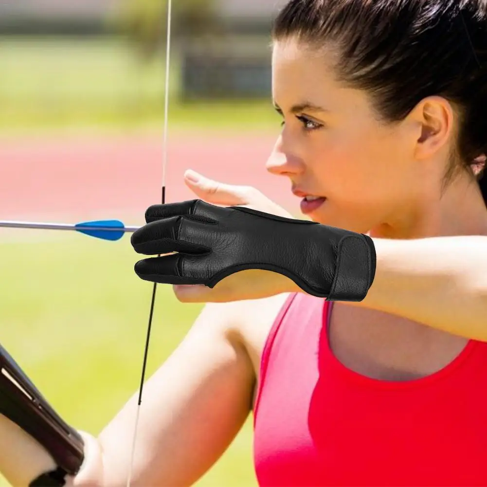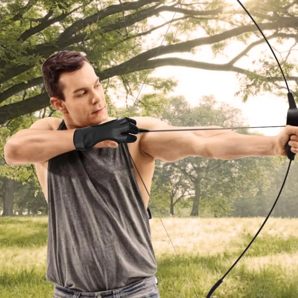 Special Offer 3 dedos guante protector de cuero de negro guardia de seguridad tiro con arco recurvo arco compuesto tiroteo ballesta Honda caza 4 Discount 5% Today!