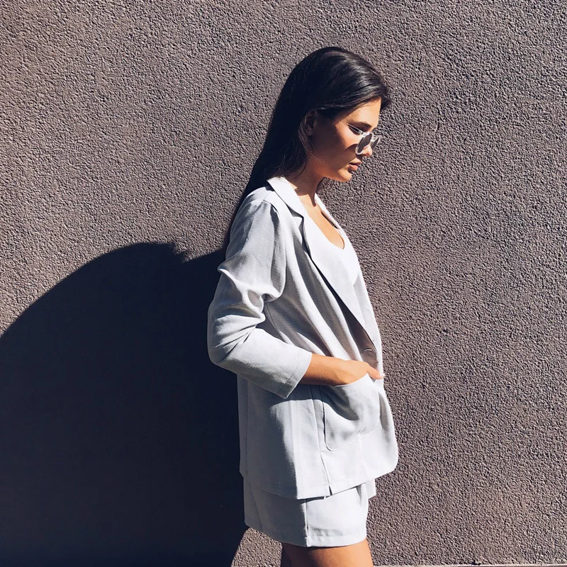Special Offer Ropa de algodón de verano traje de 2 piezas conjunto chándal para las mujeres Blazer y lazo cintura elástica pantalón corto trajes de alta calidad Discount 50% Today!