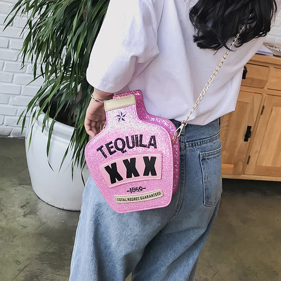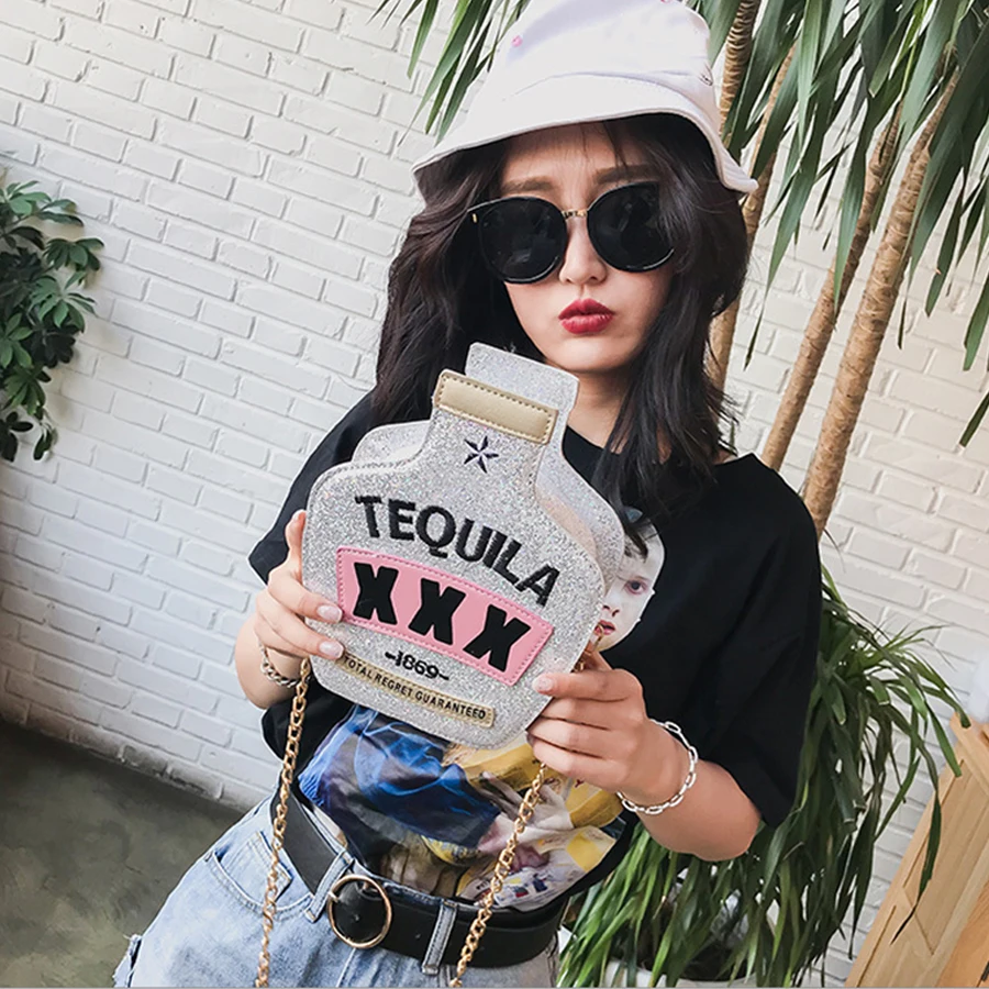 Special Offer Diversión moda personalidad bolso de mano en forma de botella bordado con lentejuelas cadena con letras bolso de hombro para mujer bandolera bolso Discount 0% Today!