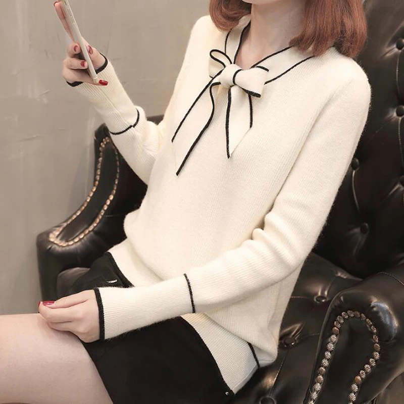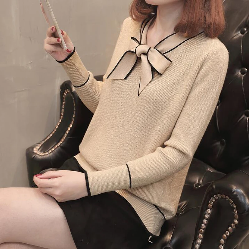 Special Offer Otoño e Invierno mujeres suéteres pullover tejido Pull LADY moda moño con manga larga Jersey suelto suéter Discount 0% Today!
