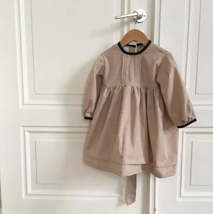 Special Offer Primavera Verano 2020 niñas de algodón de lino Palacio viento Color arco de encaje de manga larga vestidos de princesa niño pequeño, chicos, niños vestido Discount 0% Today!