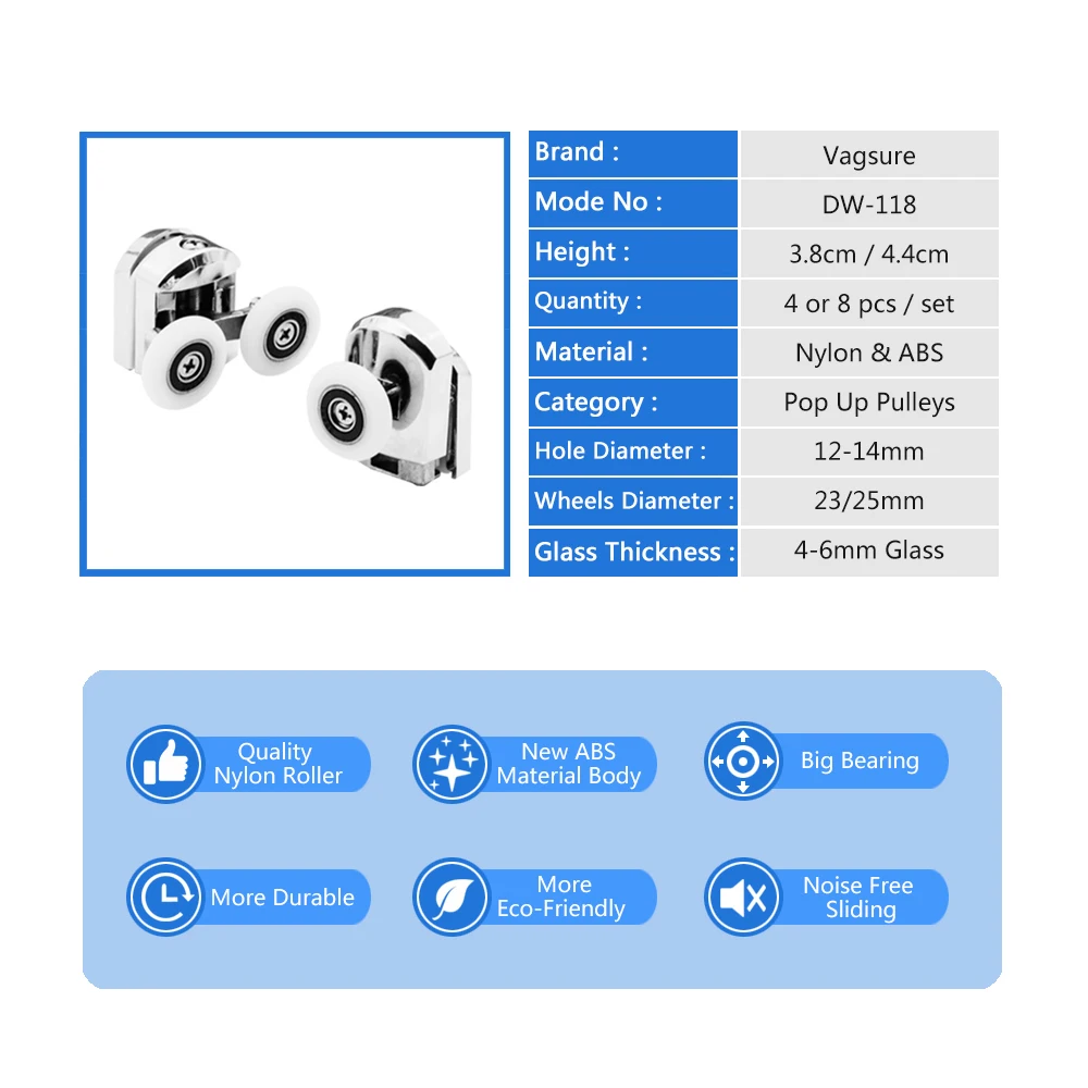Special Offer Vagsure 4 piezas 8 piezas set doble superior + polea de cabina de ducha deslizante de aleación de Zinc reemplazo de rodillos de puerta de camino de rueda Discount 0% Today!