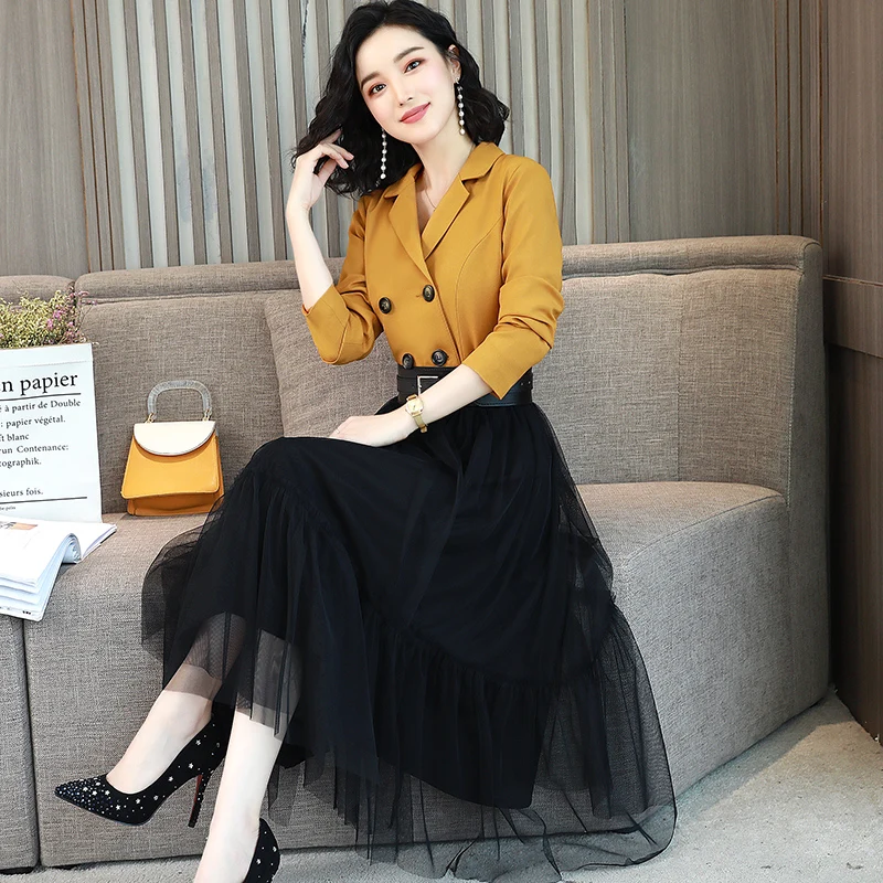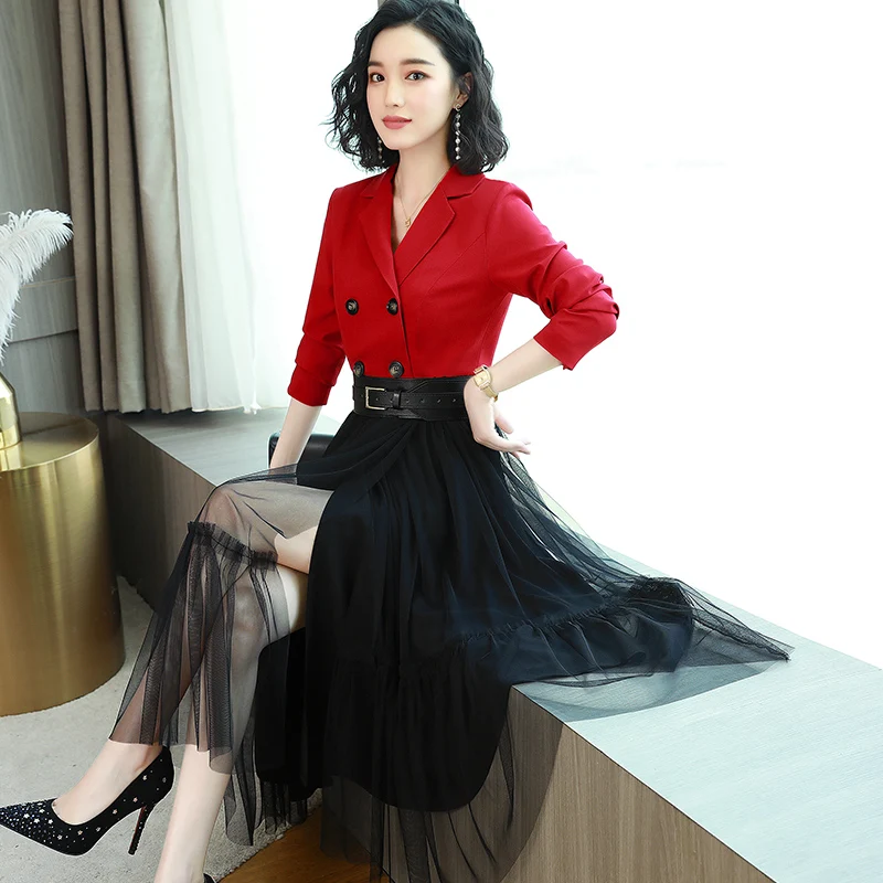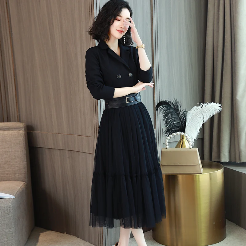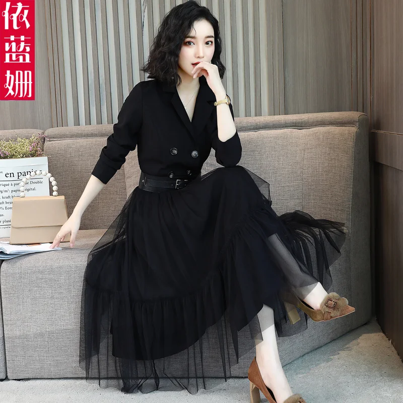 Special Offer Vestido de costura de malla de encaje 2018 otoño nuevo coreano Delgado elegante de manga larga estilo Hong Kong falda Discount 0% Today!