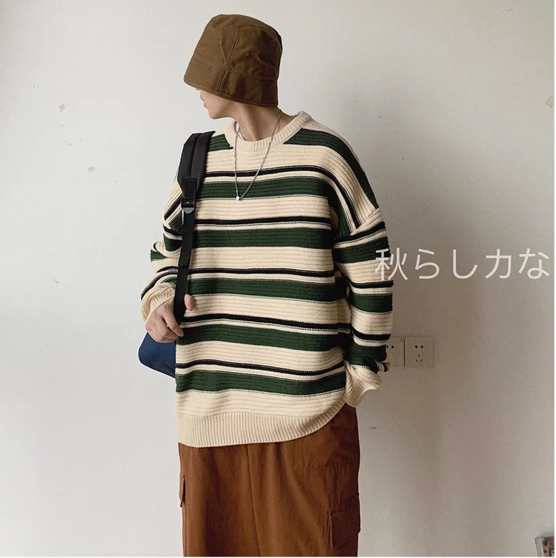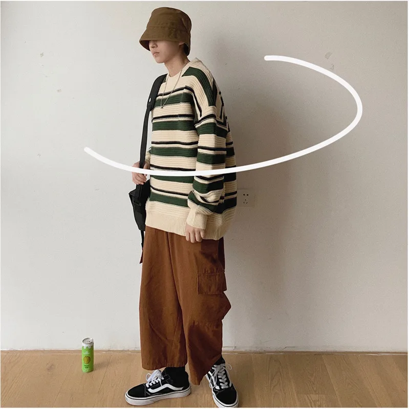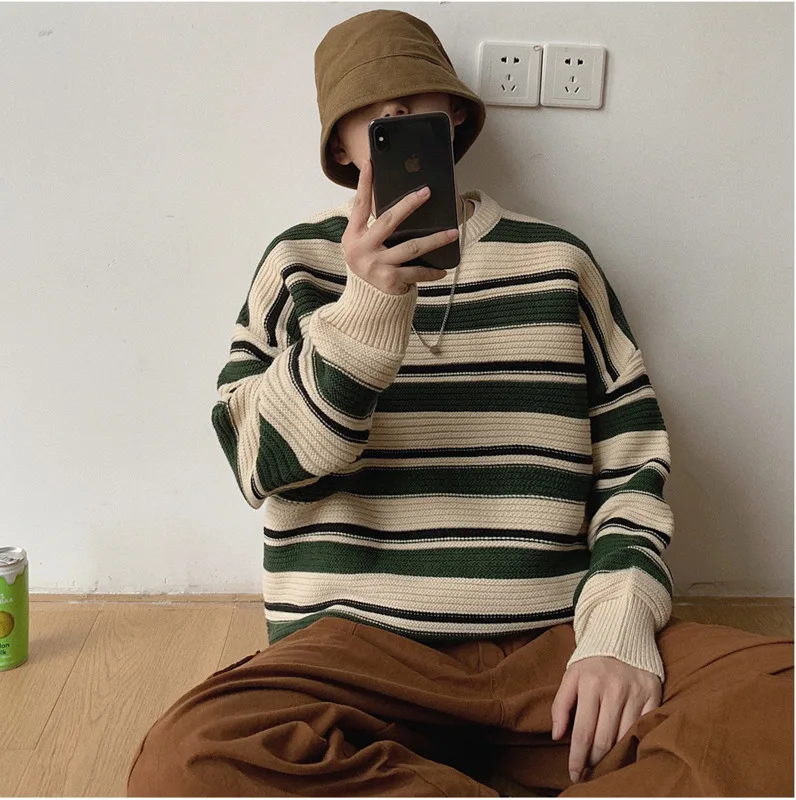 Special Offer 2019 Otoño e Invierno nueva camisa de cuello redondo a rayas Retro con capucha de tendencia para hombre versión coreana del suéter m 2XL Discount 10% Today!