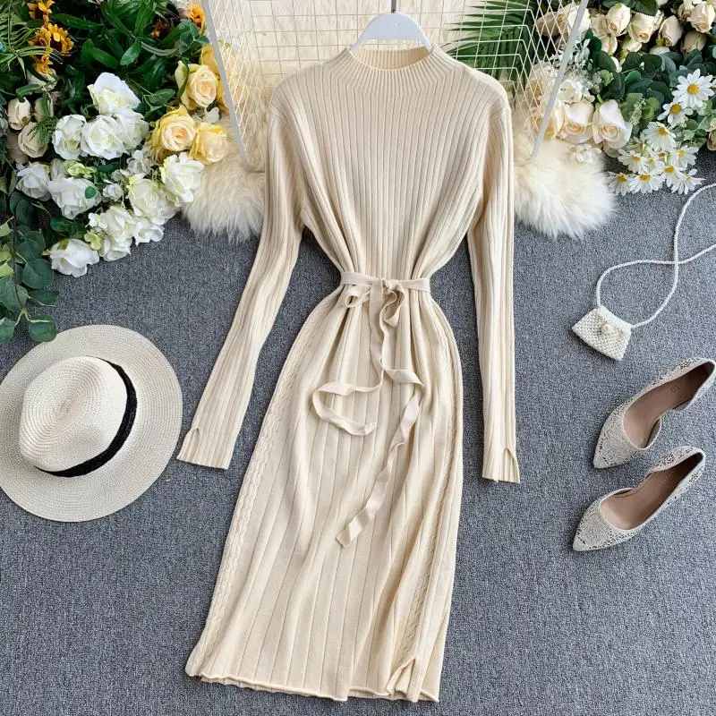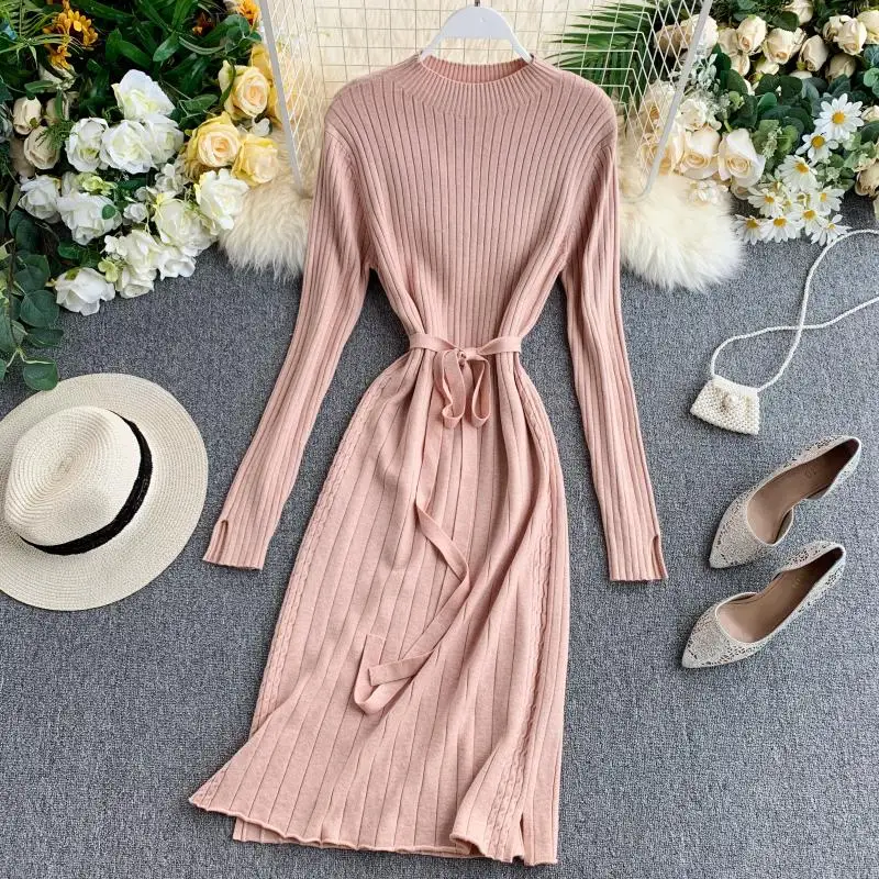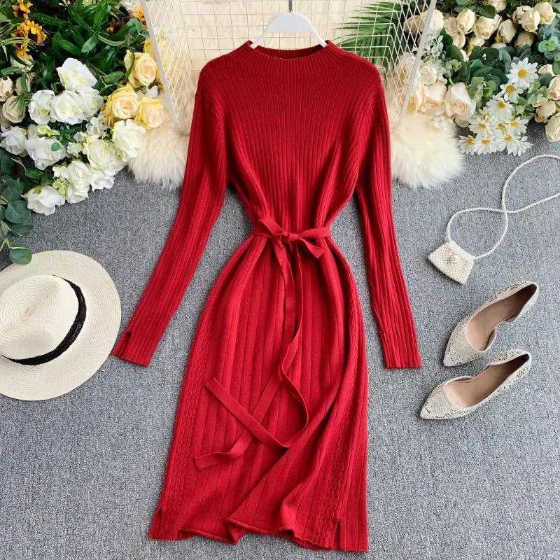 Special Offer ALPHALMODA grueso cálido de punto de manga larga fajas vestidos 2019 otoño elegante mujeres sólido delgado tejido de fondo vestidos traje Discount 25% Today!