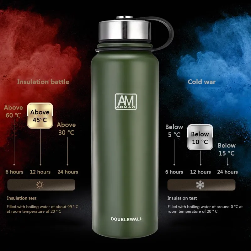 Special Offer Botella deportiva 600 800 1100 1500 ML gran capacidad de viaje al aire libre aislamiento al vacío olla 304 termo portátil de acero inoxidable Discount 30% Today!