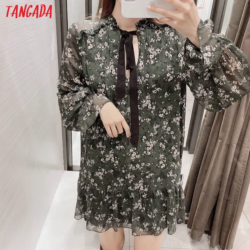 Special Offer Tangada mujer dulce corbata moño de chifón mini vestido volantes manga larga plisado Mujer vestidos sueltos vestidos 3H211 Discount 30% Today!