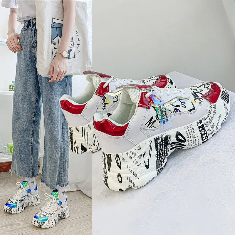Special Offer Zapatillas de suela gruesa para mujer primavera 2019 colores mezclados zapatos de plataforma de punta redonda zapatos casuales para mujer zapatos para correr para mujer Discount 30% Today!