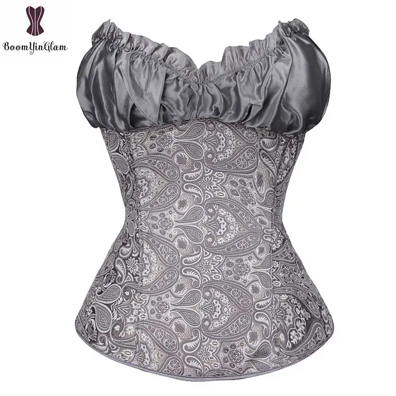 Special Offer Corsé de flores Jacquard con lazo de satén cremallera lateral sobre el busto cintura Trainer Sexy Rojo Negro albaricoque blanco gris gótico corsés 864 Discount 32% Today!