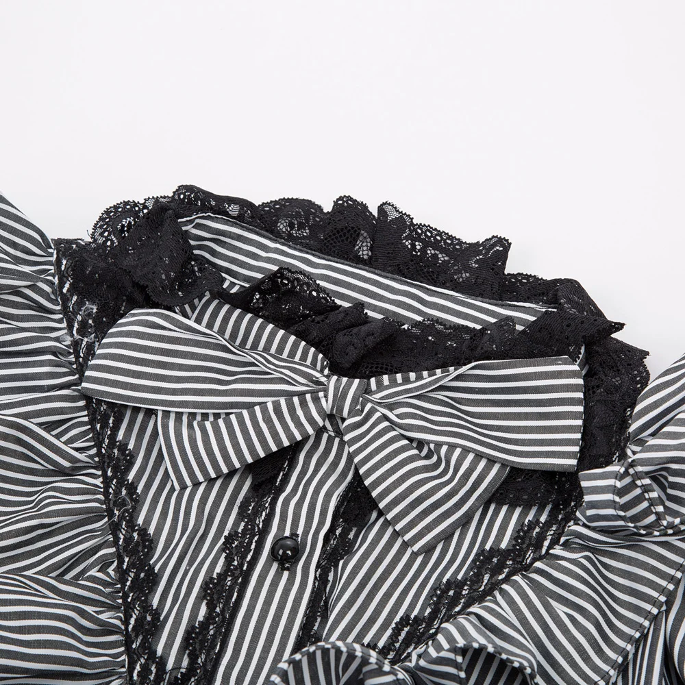 Special Offer Blusa vintage mujer camisa punk retro gótico renacentista Pinstripe manga larga soporte cuello con volantes arco nudo camisa parte superior Discount 33% Today!