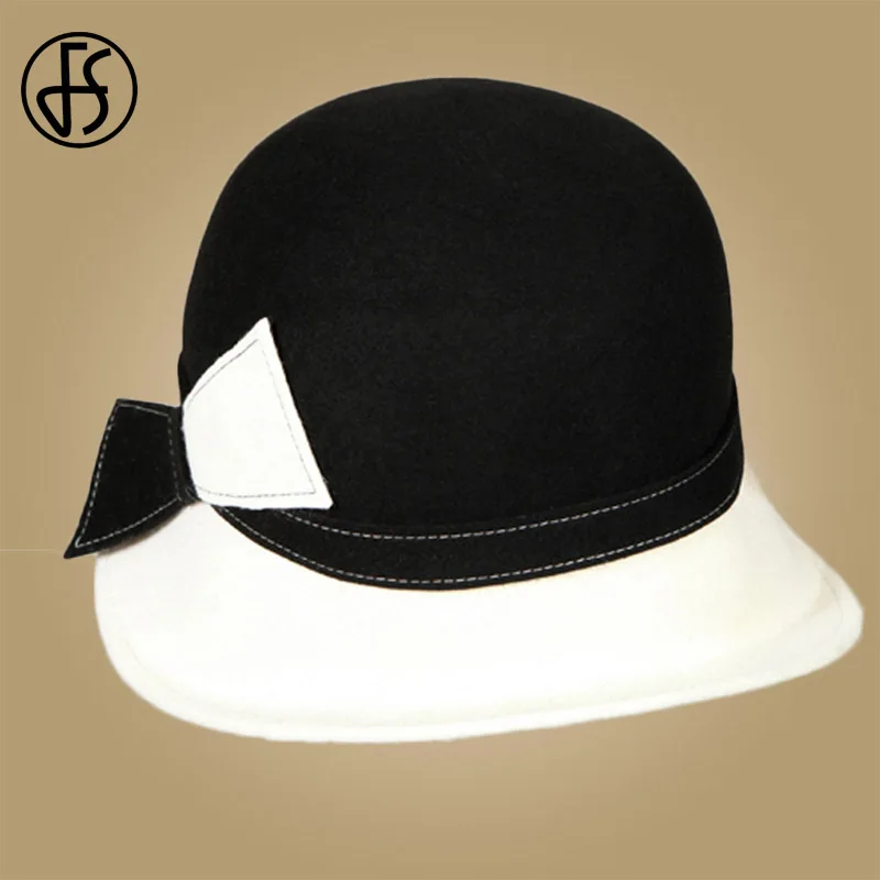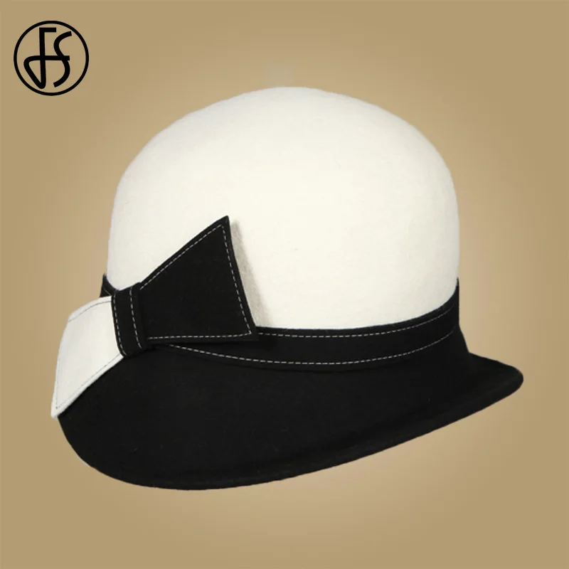 Special Offer FS sombrero de ala ancha blanco lana arco bombín Fedora sombrero para mujer Chapeau Femme fetitre invierno Cloche señoras Iglesia fieltro gorras de fieltro Discount 36% Today!