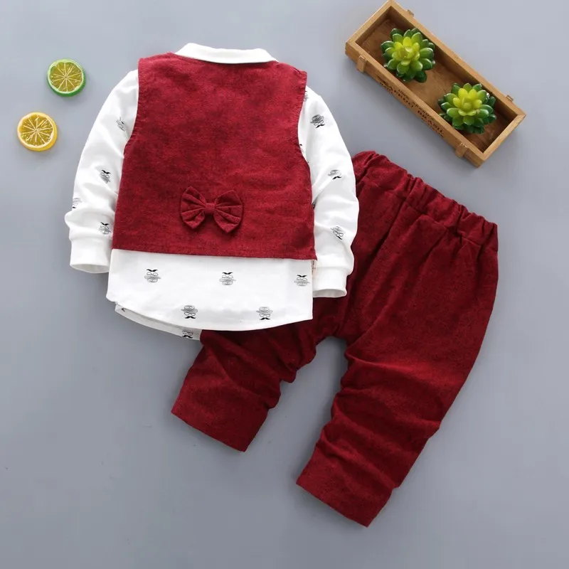Special Offer 2019 nueva ropa para niños primavera otoño Chaleco de algodón para niños camisa de manga larga pantalones 3 uds traje Casual de pajarita de caballero infantil Discount 40% Today!