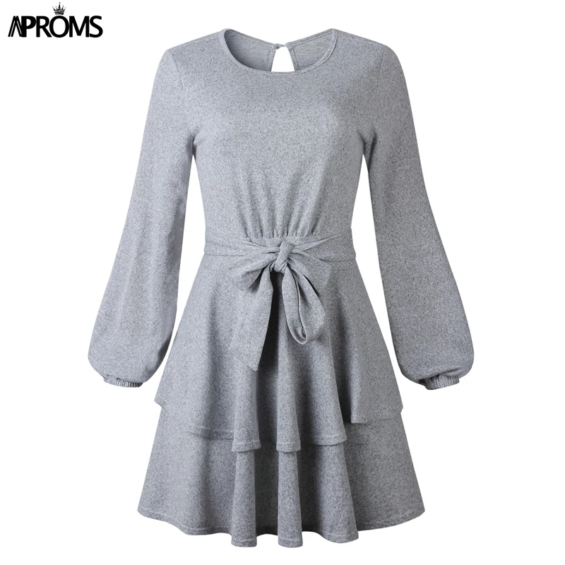 Special Offer Aproms elegante de manga larga de punto ceñido al cuerpo vestido de mujer Sexy volantes fajas pajarita de invierno Streetwear gris acanalado vestidos 2019 Discount 40% Today!