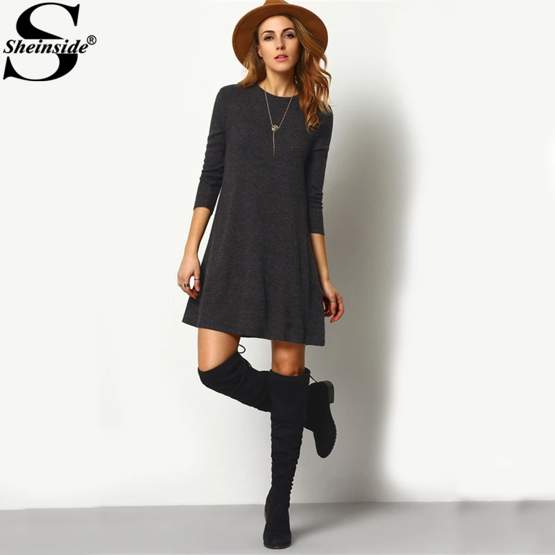 Special Offer Sheinterior Casual sólido minimalista suéter vestido recto mujeres otoño gris inferior vestidos mujeres básico una línea Mini vestido Discount 45% Today!