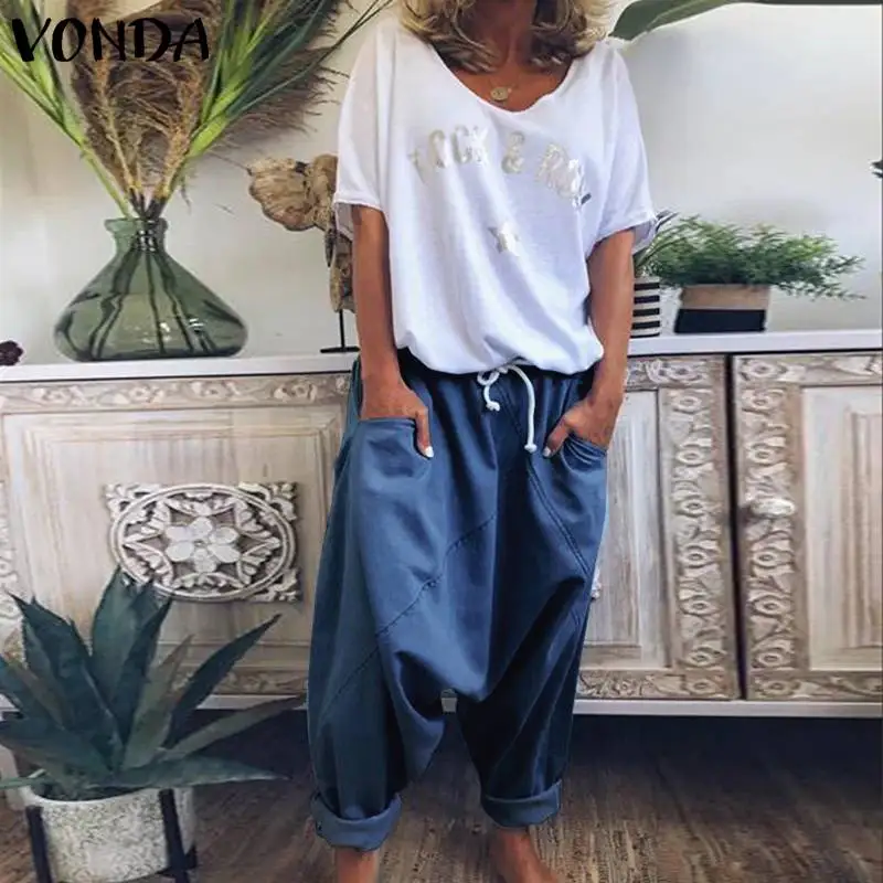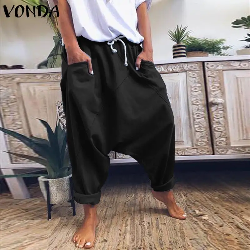 Special Offer VONDA Harem Pantalones Casual de Color sólido para mujer pantalones de talla grande pierna ancha mujer Bohemia verano inferior S 5XL Discount 45% Today!