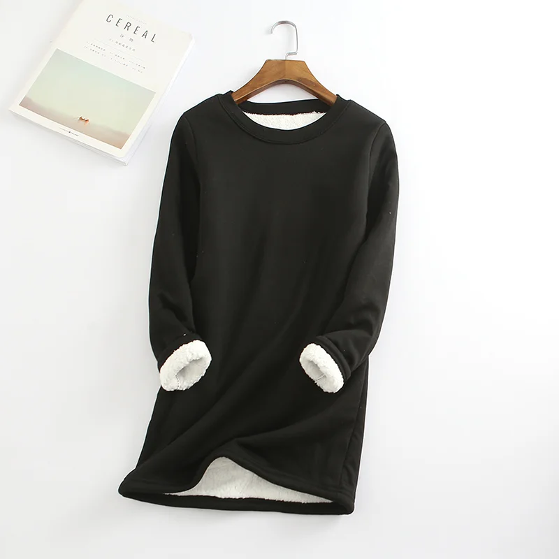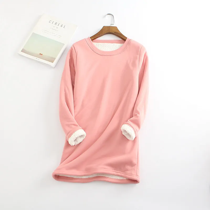 Special Offer Nueva camiseta de Otoño Invierno para mujer, gruesa y de terciopelo, camiseta de mujer cálida de lana de cordero, Camiseta larga para mujer C4804 Discount 48% Today!