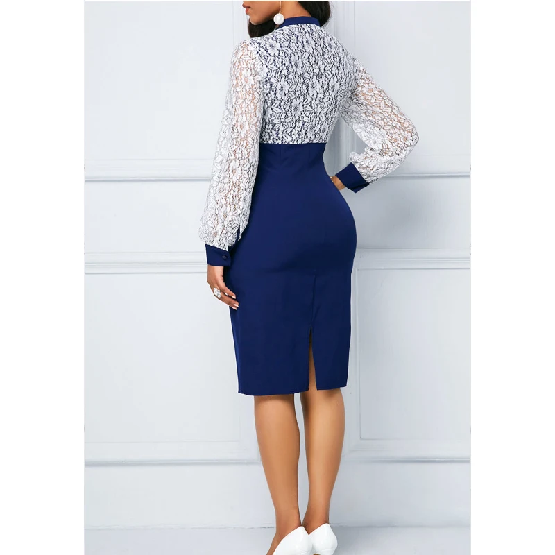 Special Offer Blanco encaje verano otoño Vestido Mujer 2019 Casual de talla grande Delgado Oficina vestido ajustado elegante Sexy vestido de fiesta de manga larga 5XL Discount 49% Today!