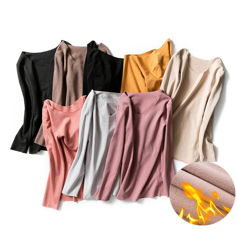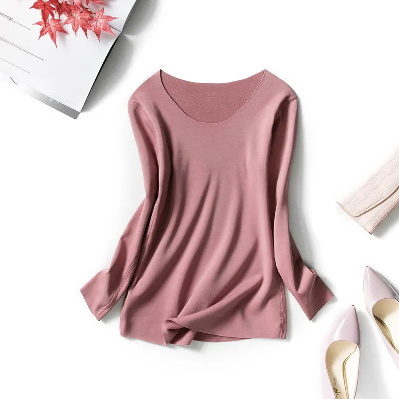 Special Offer Otoño Invierno mujeres de manga larga sin seguimiento camisetas cálidas de terciopelo grueso camisetas camisa femenina de fondo camisetas de talla grande AB1490 Discount 49% Today!