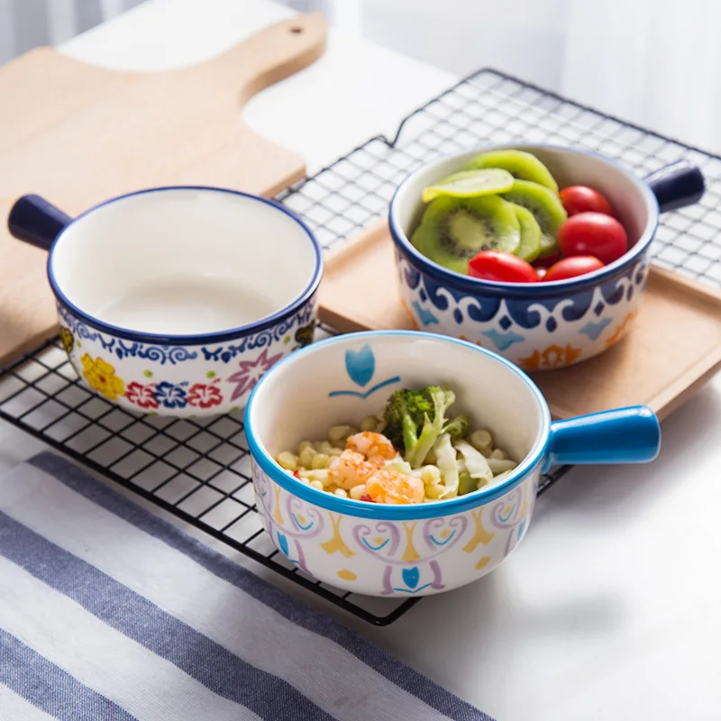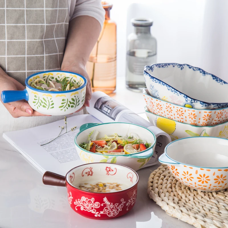Special Offer Cuenco de cerámica creativo para ensaladas, cuenco de arroz doméstico, vajilla japonesa, juego de cuenco de estilo occidental, juego de cuenco pintado a mano con personalidad Discount 50% Today!