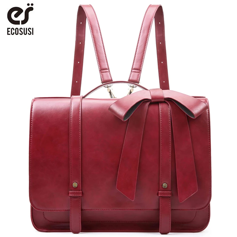 Special Offer ECOSUSI 15,3 Laptop Bag mujer Travel PU bolsos de cuero en mujer Tote bandolera bolsos de hombro mochilas escolares 2019 Discount 50% Today!