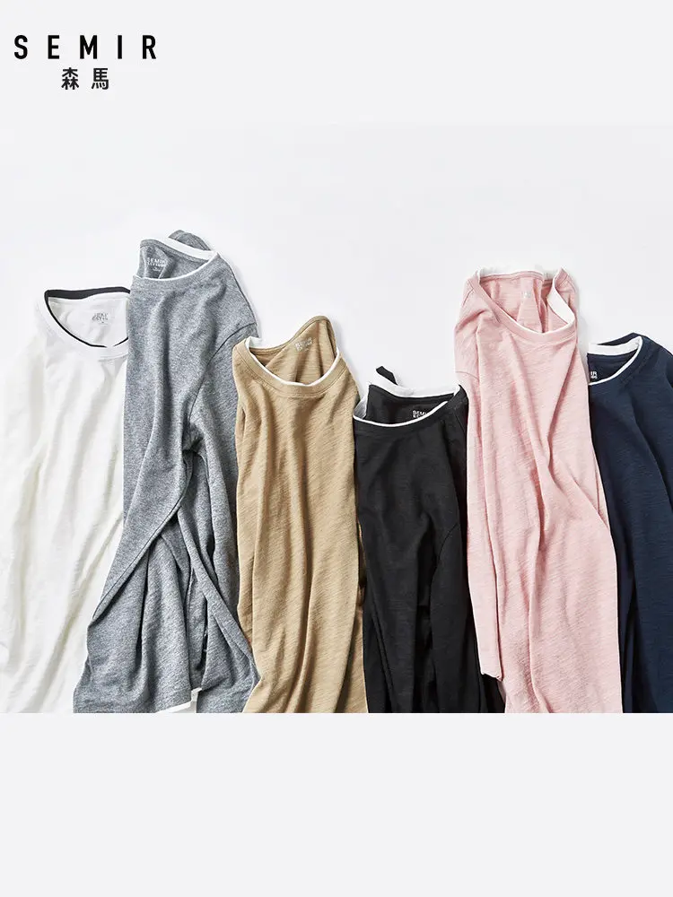 Special Offer Camiseta de manga larga de SEMIR para hombre, camiseta de primavera y otoño para hombre, camisa de fondo de algodón 2019, sección delgada, ropa masculina de color sólido Discount 59% Today!