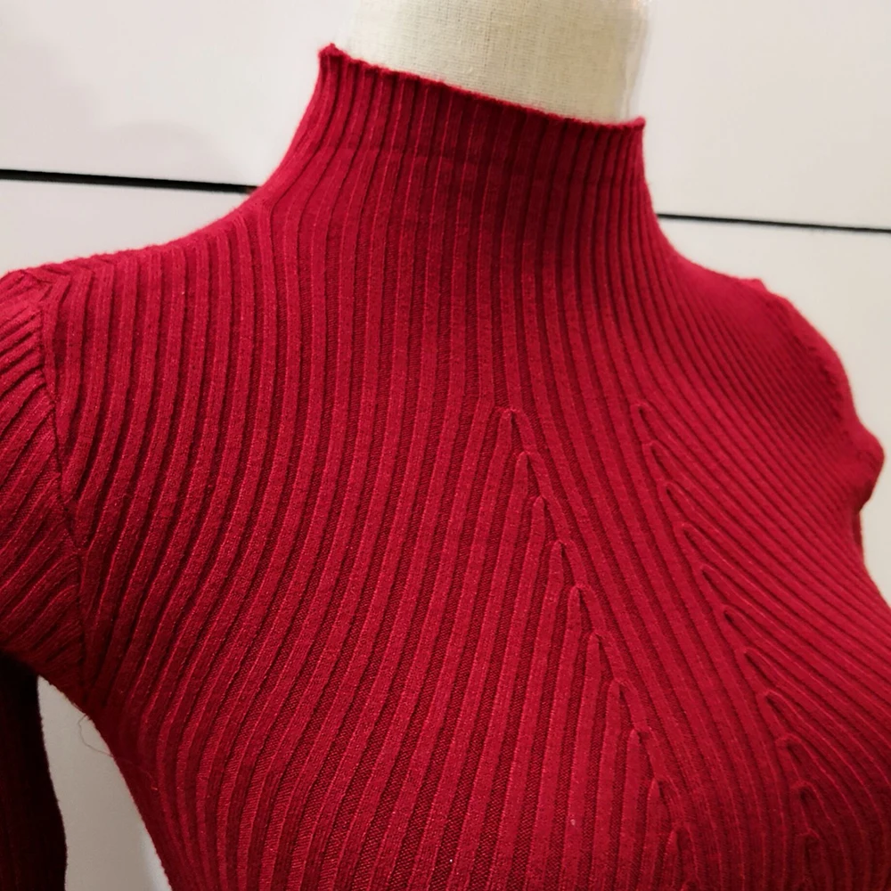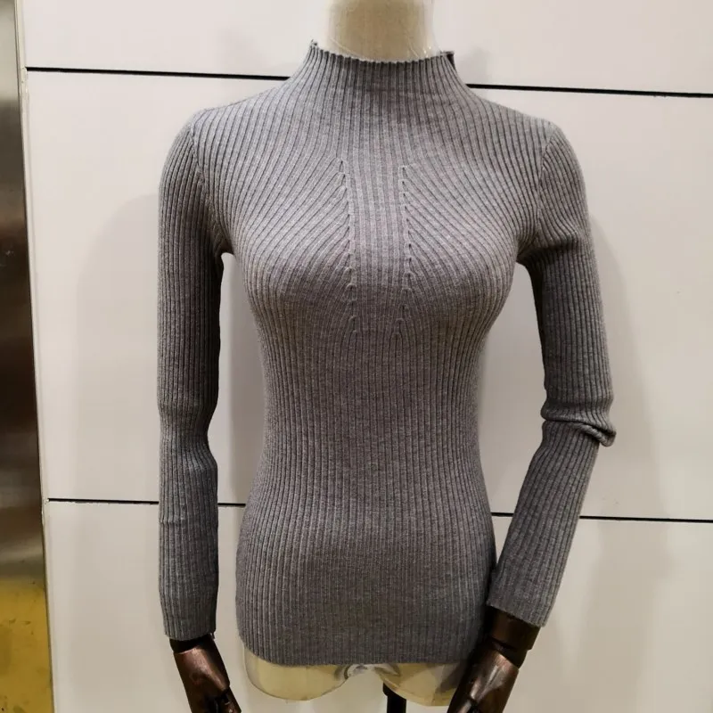 Special Offer Otoño mujeres suéteres de punto otoño algodón ajustado Sexy cuello alto auto cultivo inferior invierno nuevo medio cuello alto Discount 0% Today!