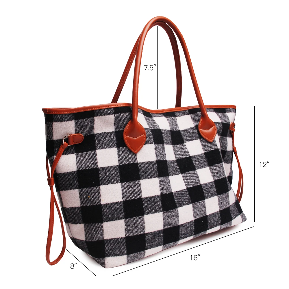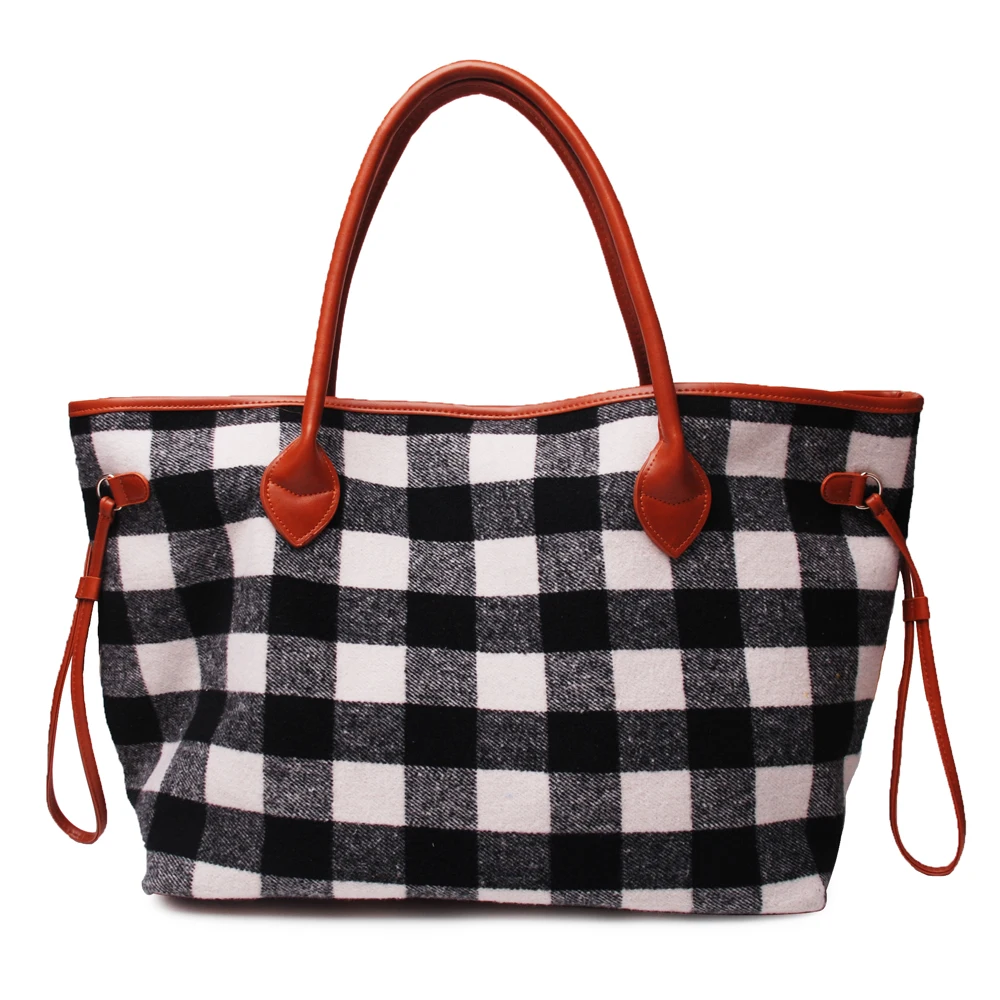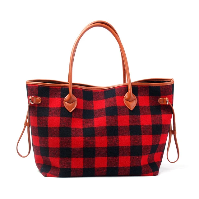 Special Offer Personalizar bolso de mano para mujer negro y rojo a cuadros de franela de moda de Navidad bolso con mango de cuero de imitación y parte inferior Discount 0% Today!