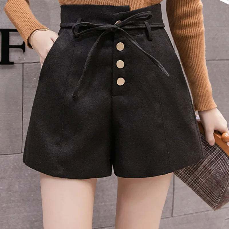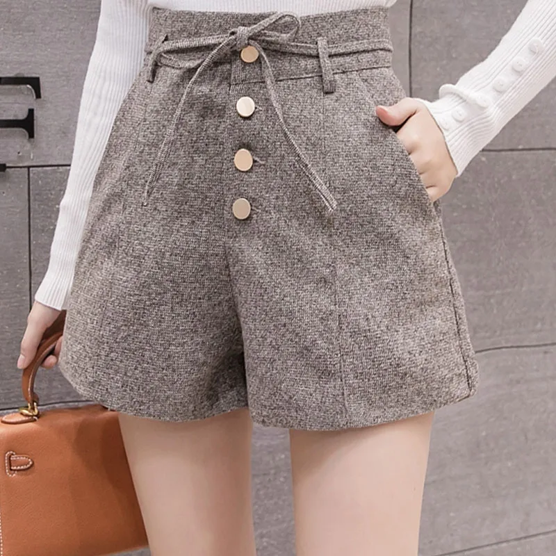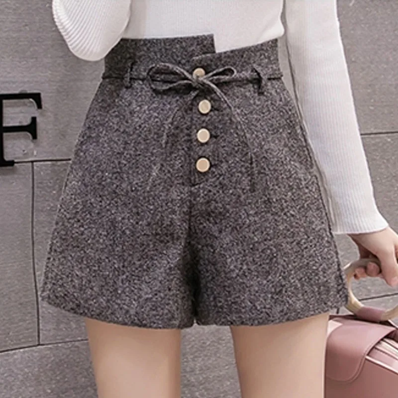 Special Offer Pantalones cortos de cintura alta nuevos 2019 moda mujer Otoño Invierno pantalones cortos Casual gris negro caqui mujeres pantalones cortos pierna ancha 6301 50 Discount 30% Today!