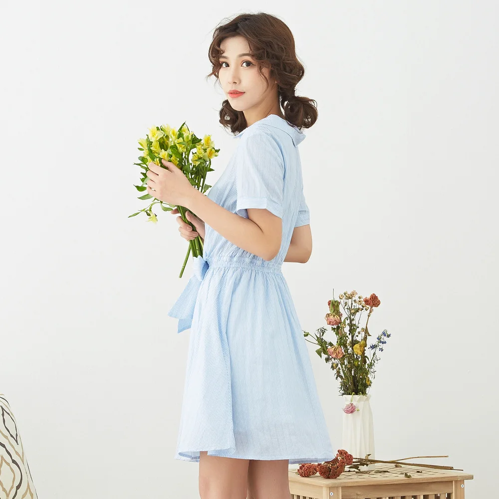 Special Offer Metersbonwe marca vestidos de mujer temperamento vestido pequeño moderno solapa banda chic vestido con rayas Discount 44% Today!